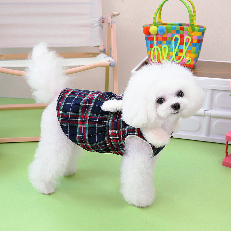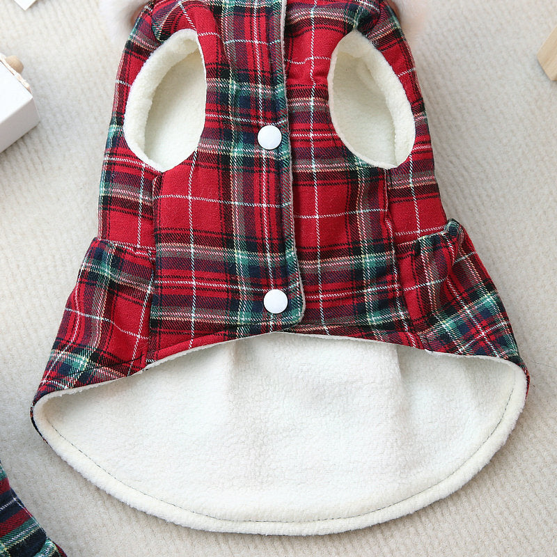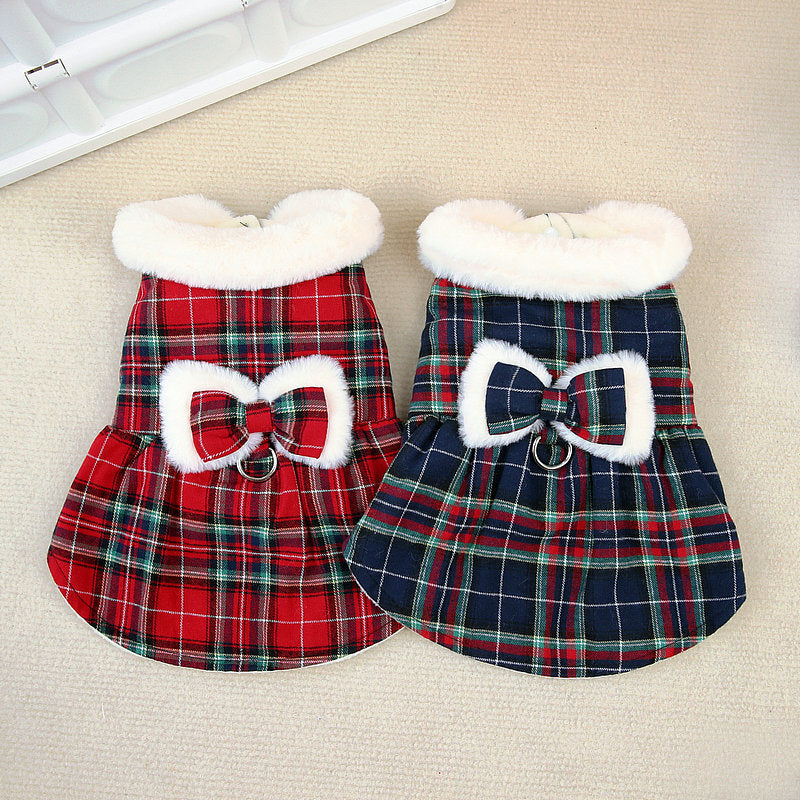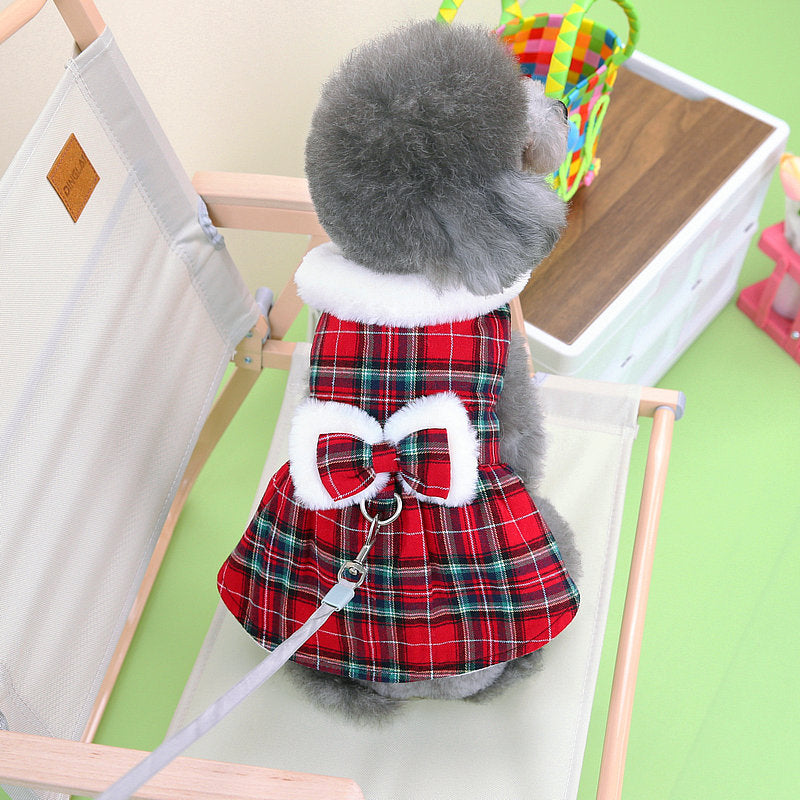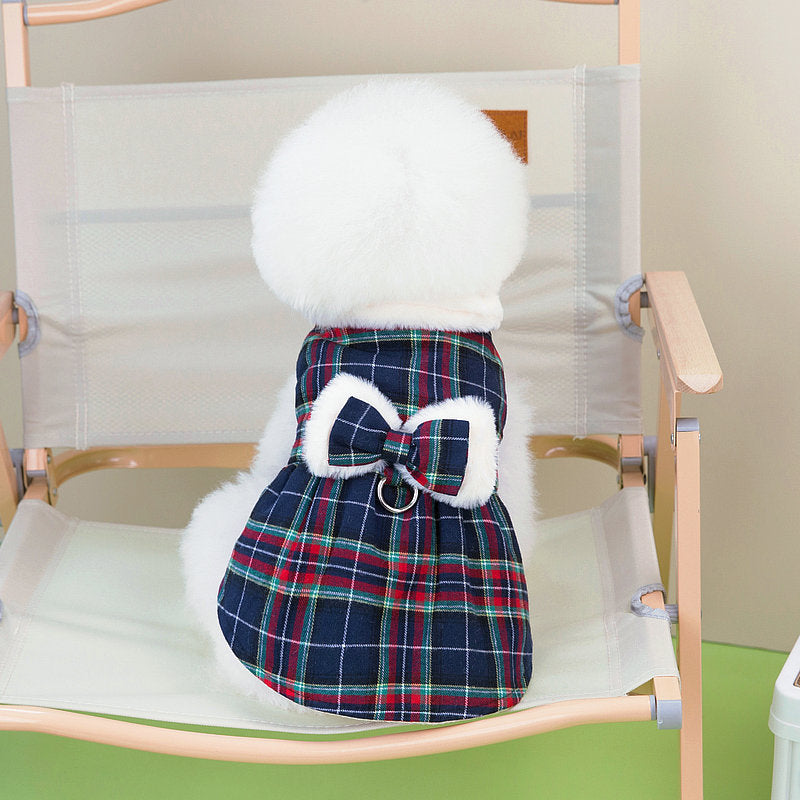 Plaid Fleece Bowknot Dog Harness Dress Coat