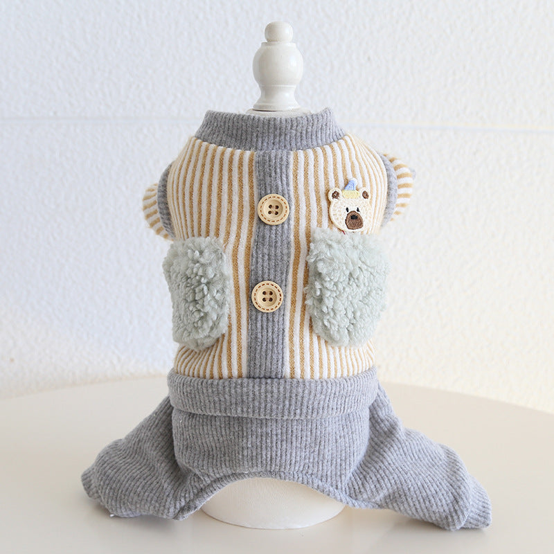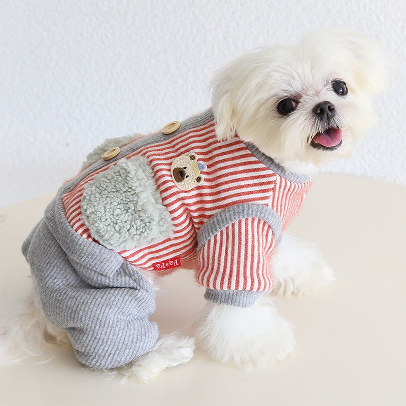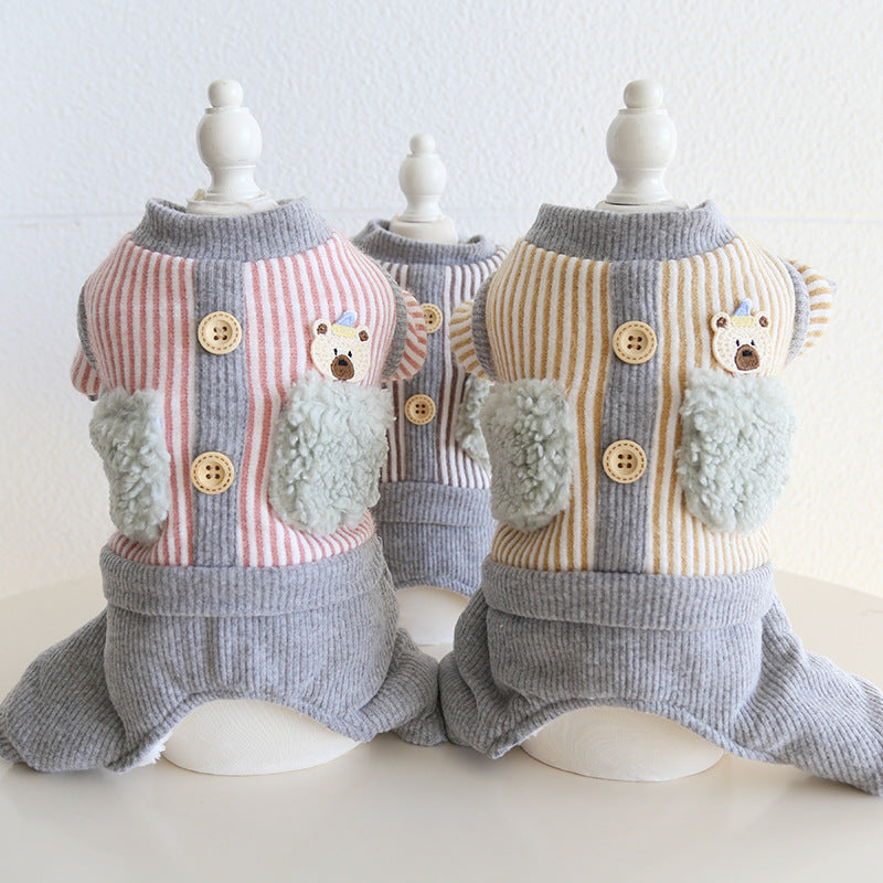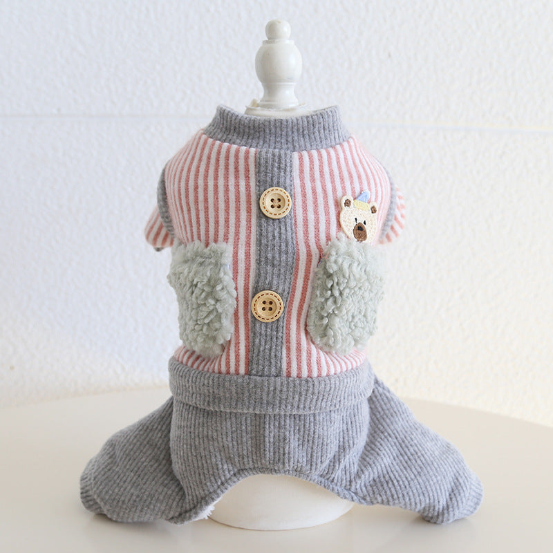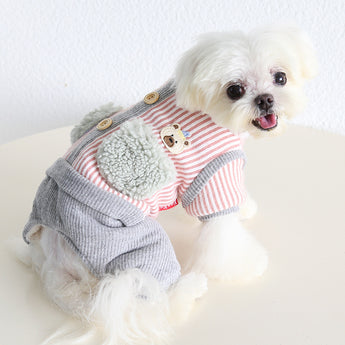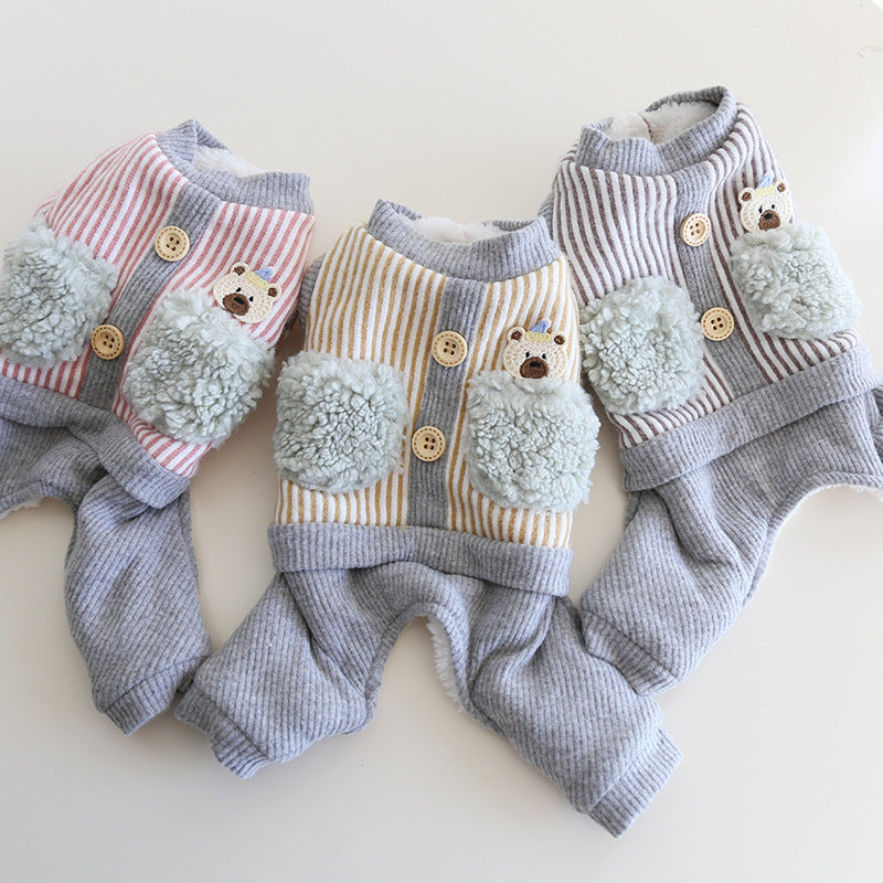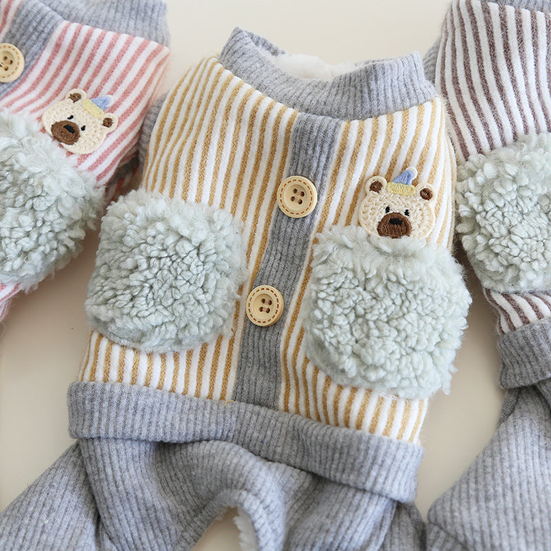 Striped Bear Pocket Design Fleece Dog Jumpsuits