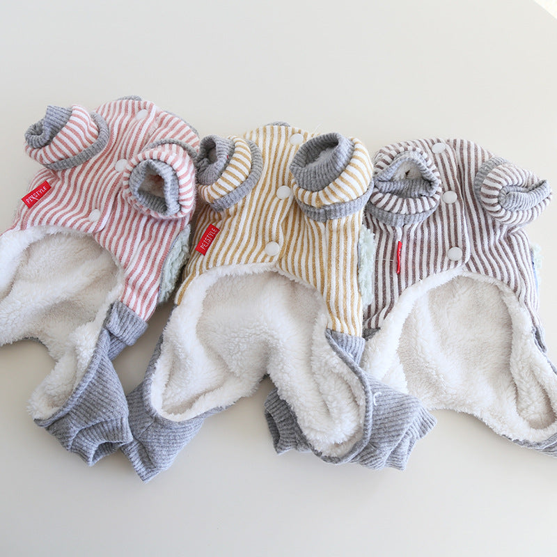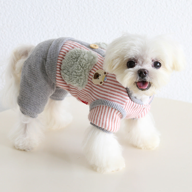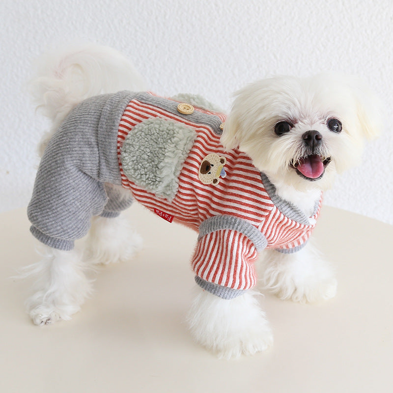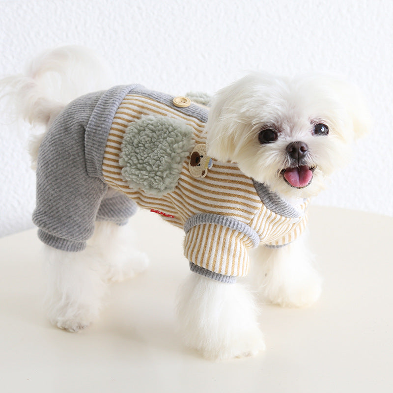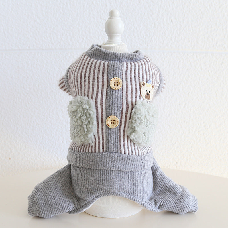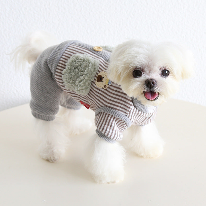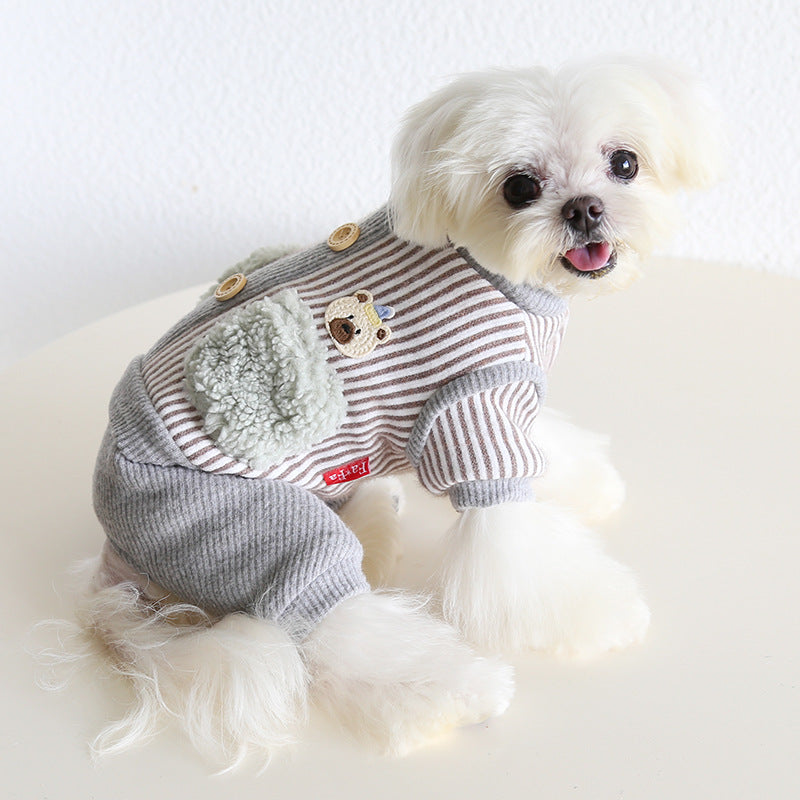 Striped Bear Pocket Design Fleece Dog Jumpsuits