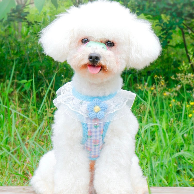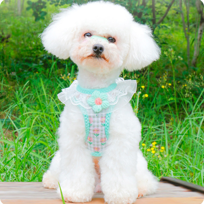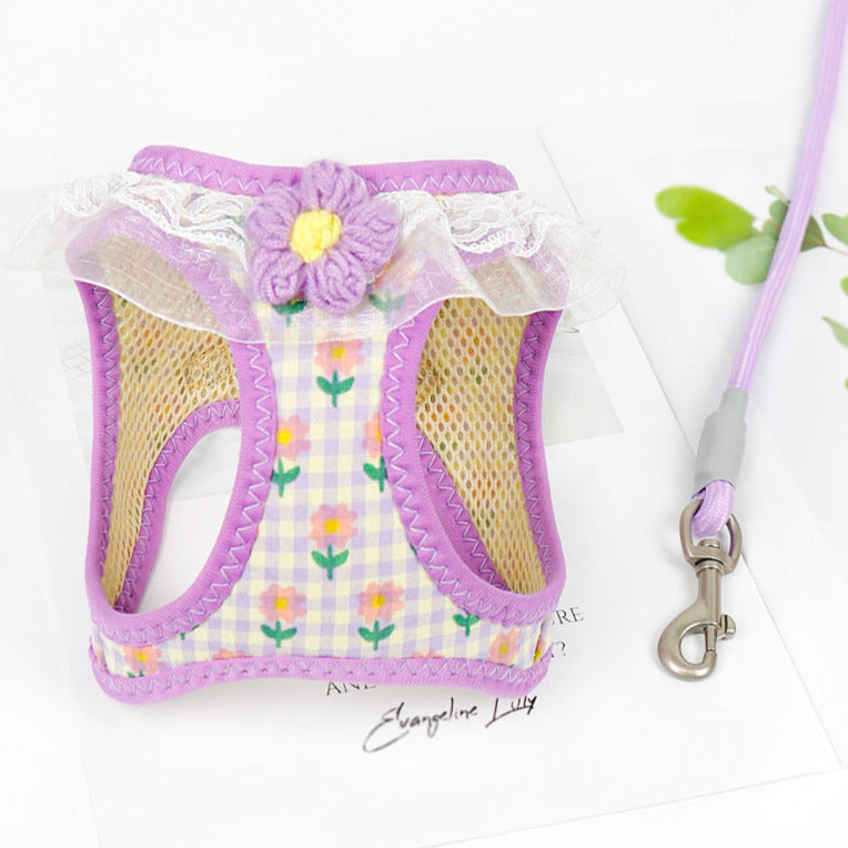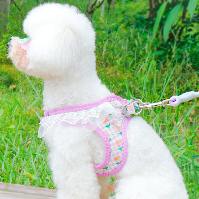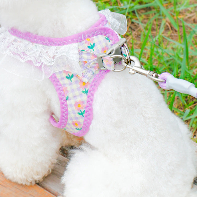 Lace Flower Design Plaid Dog Harness Leash Set