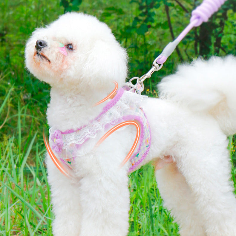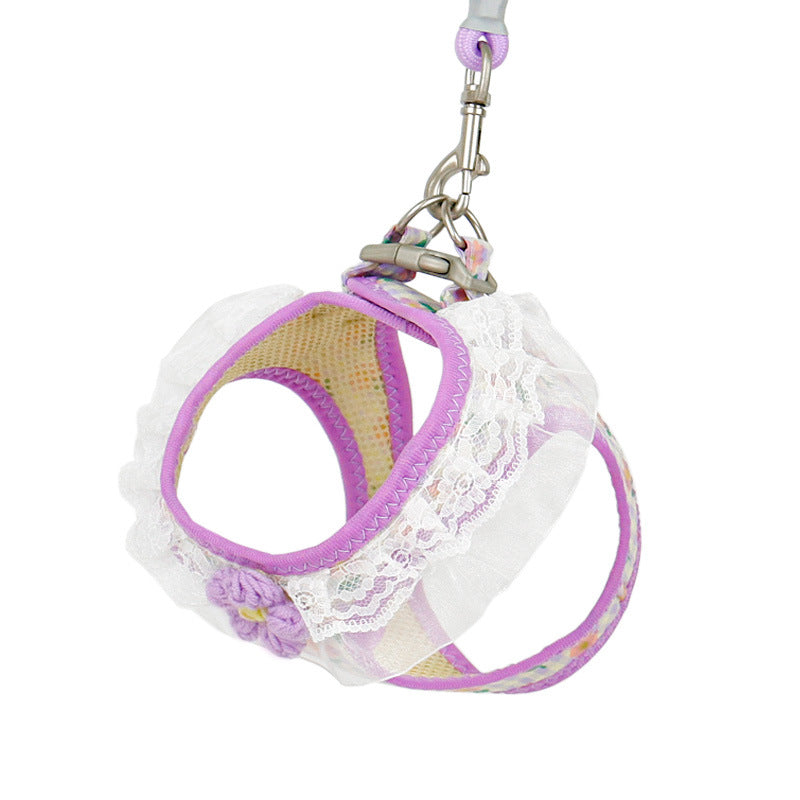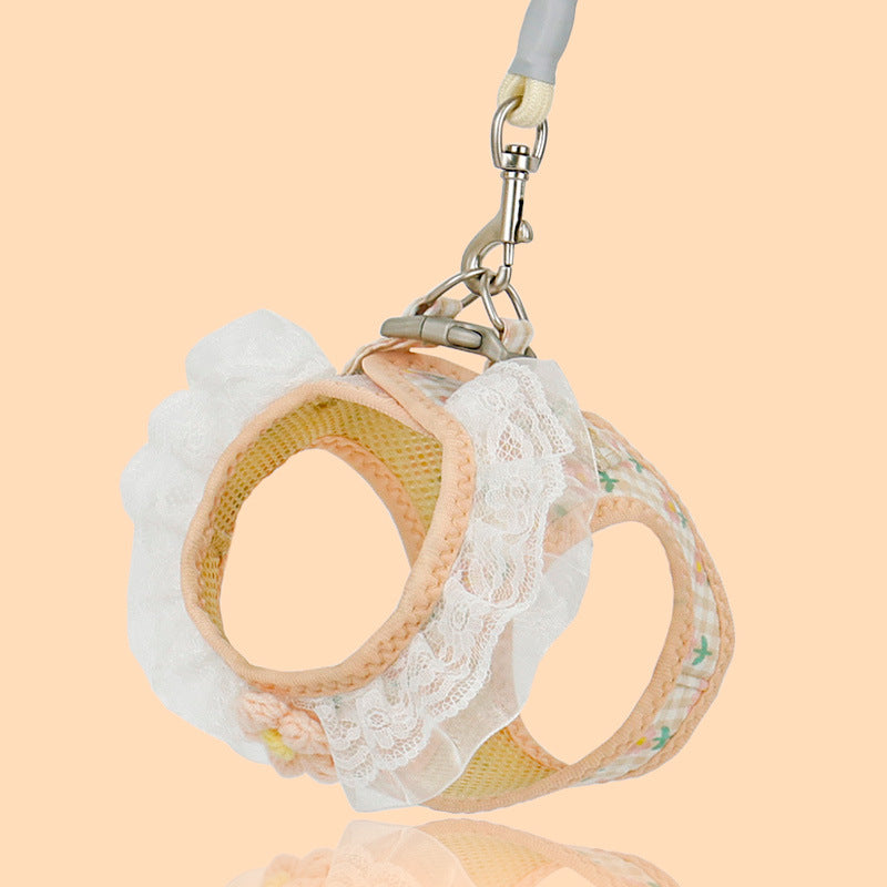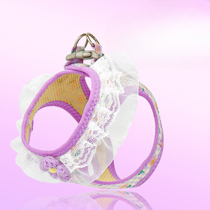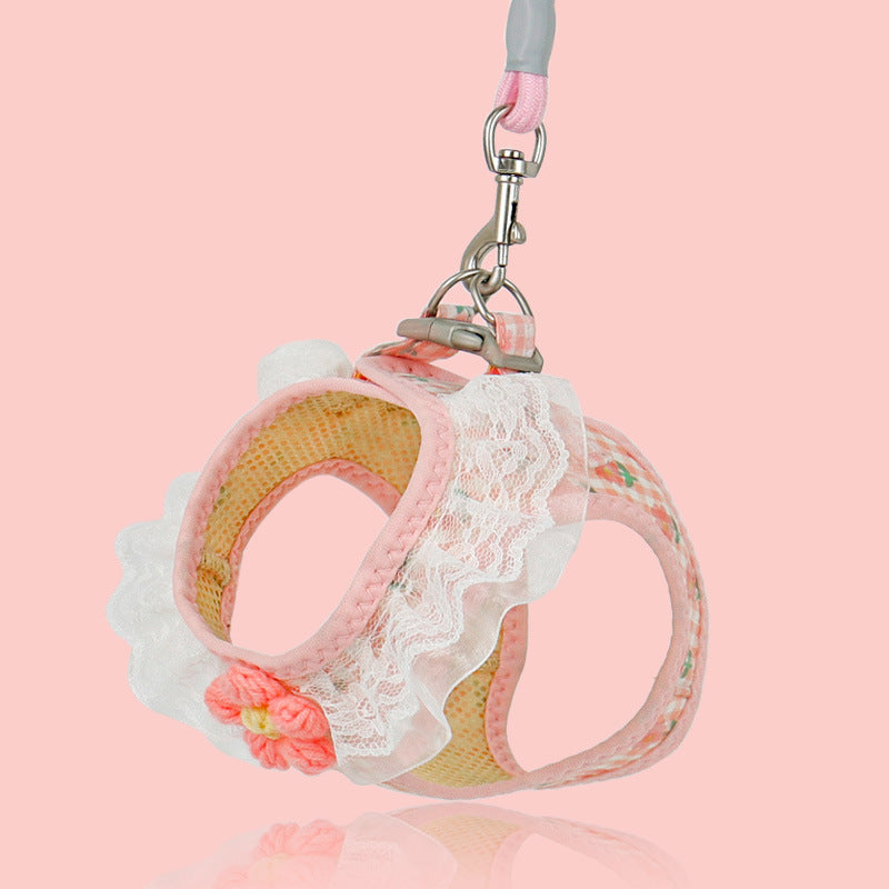 Lace Flower Design Plaid Dog Harness Leash Set