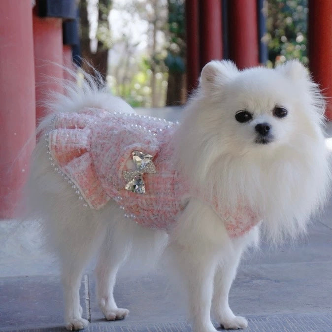Pearl Flower Bowknot Decor Dog Cat Dress