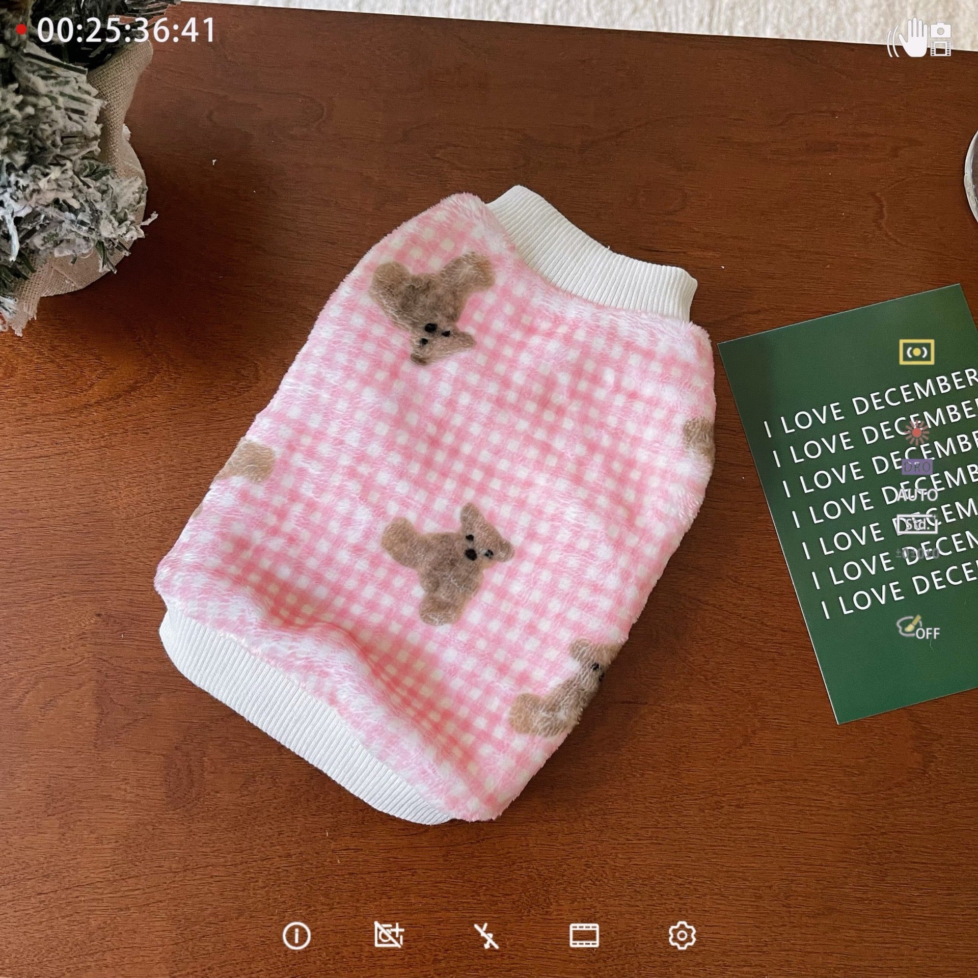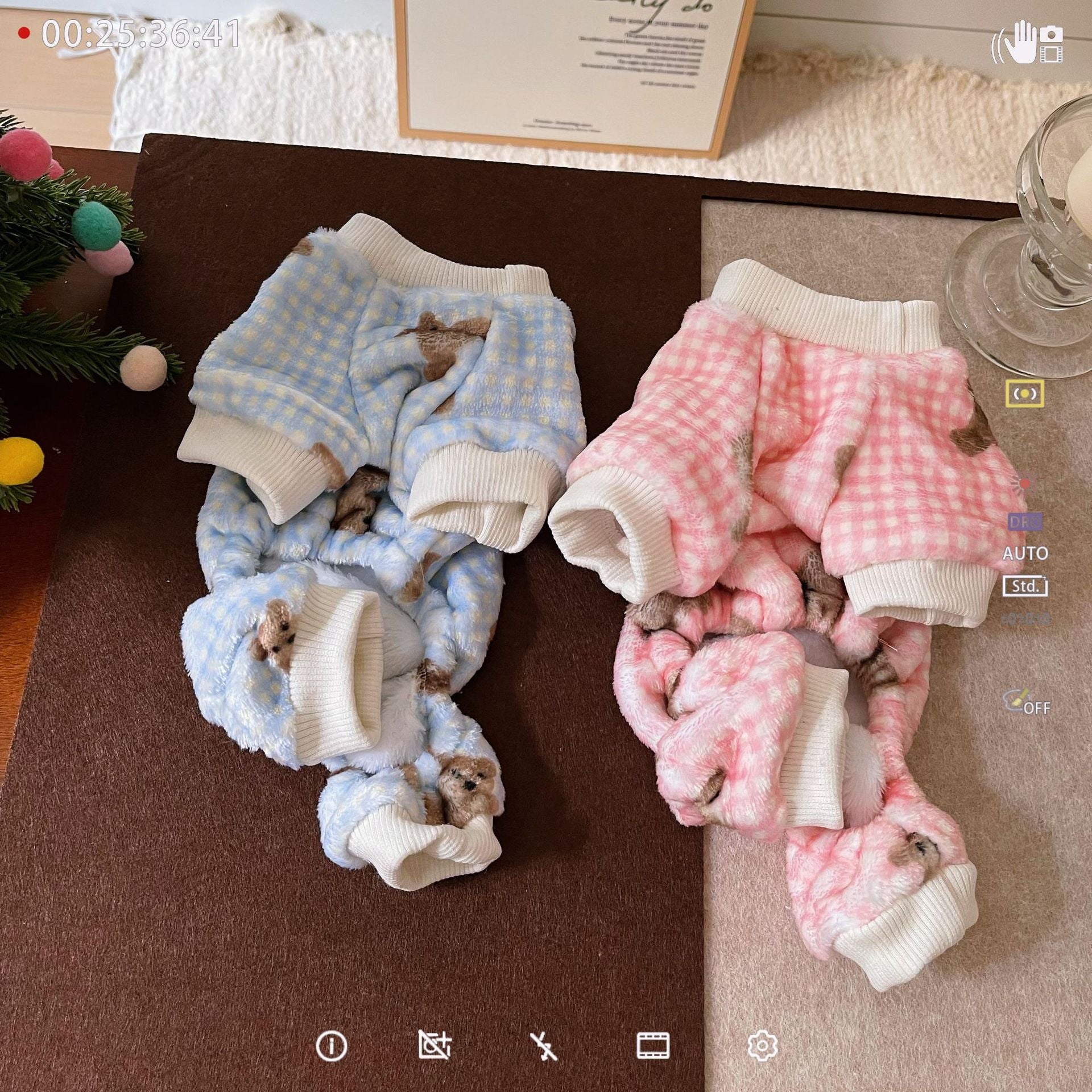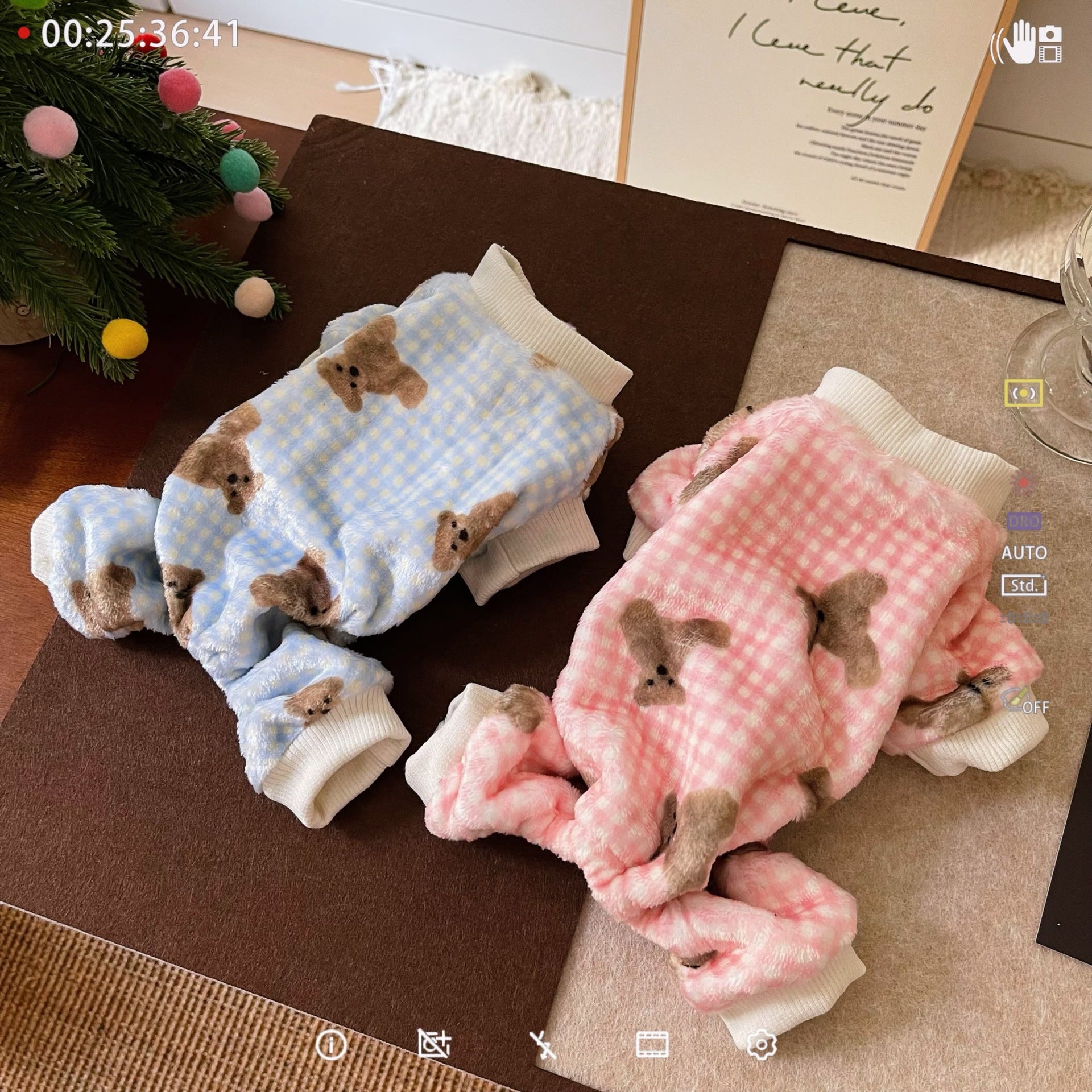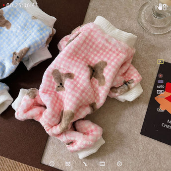 Fleece Plaid Teddy Bear Dog Jumpsuits/Hoodie