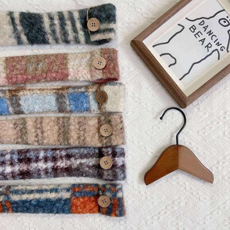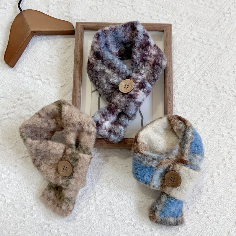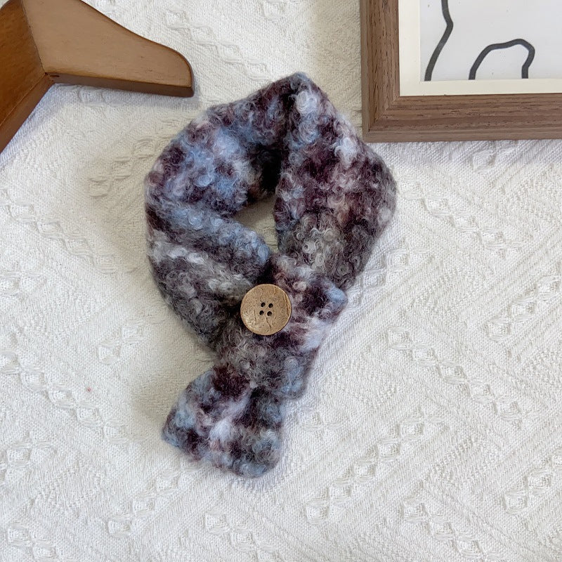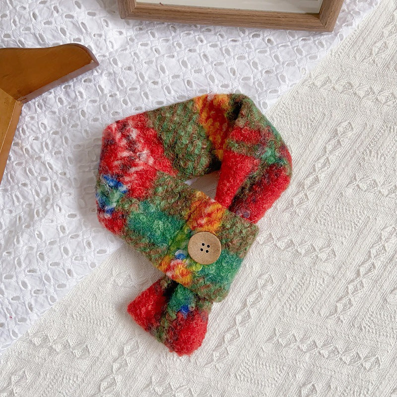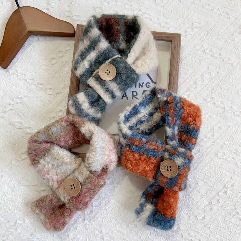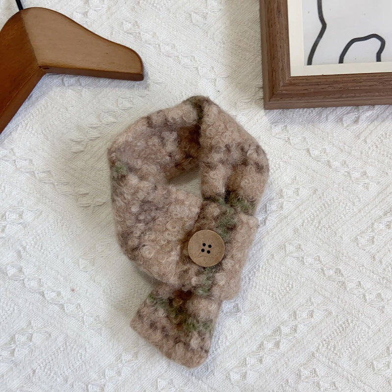 Plaid Pattern Buttoned Fleece Dog Cat Scarf