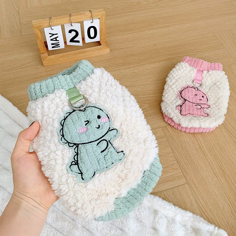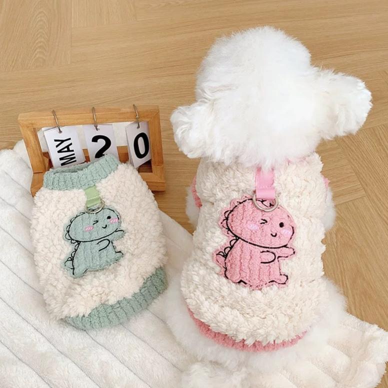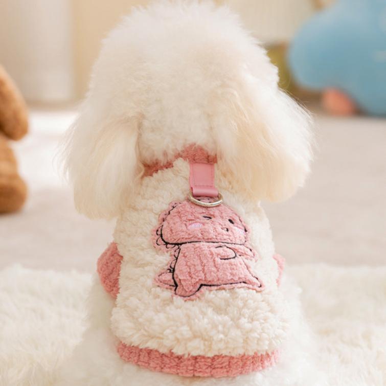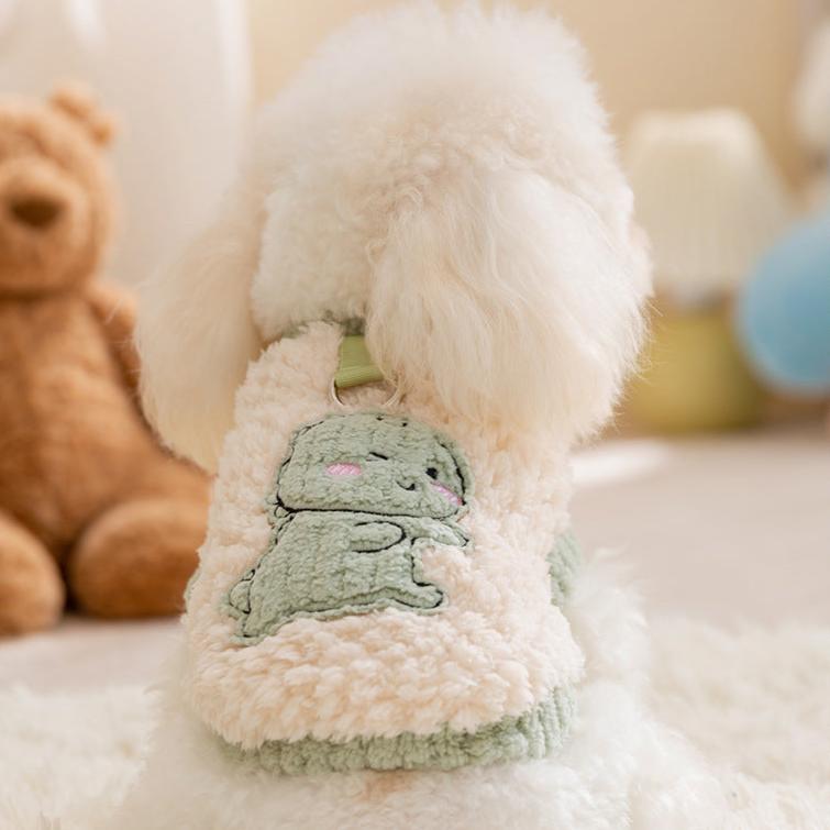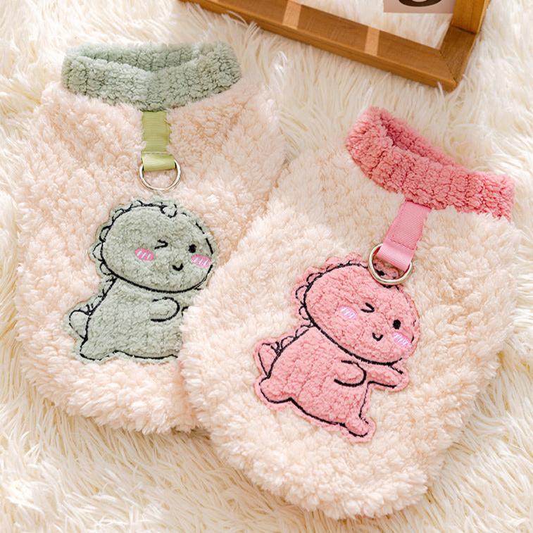 Fleece Cute Dinosaur Printed Dog Harness Vest