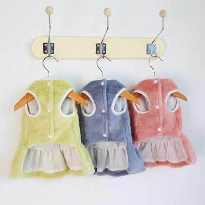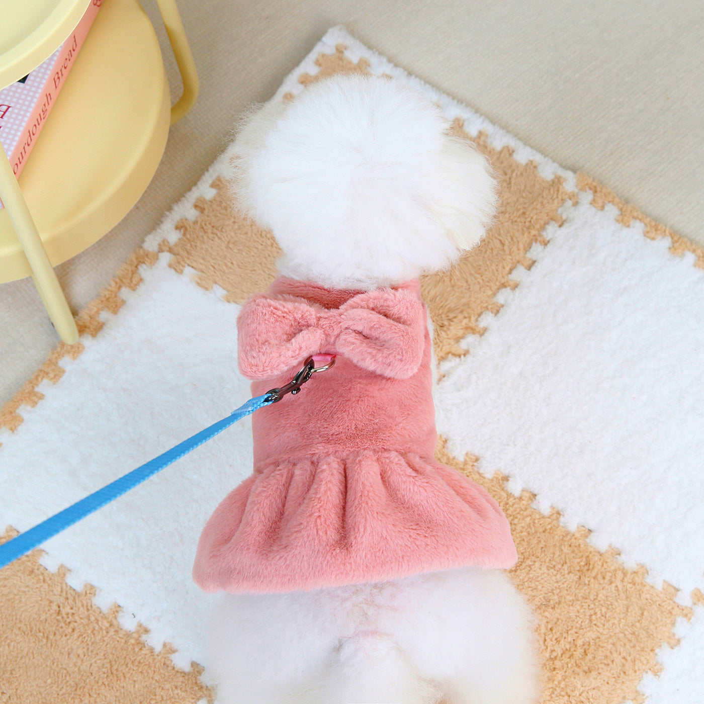 Fleece Solid Color Bowknot Dog Cat Harness Dress