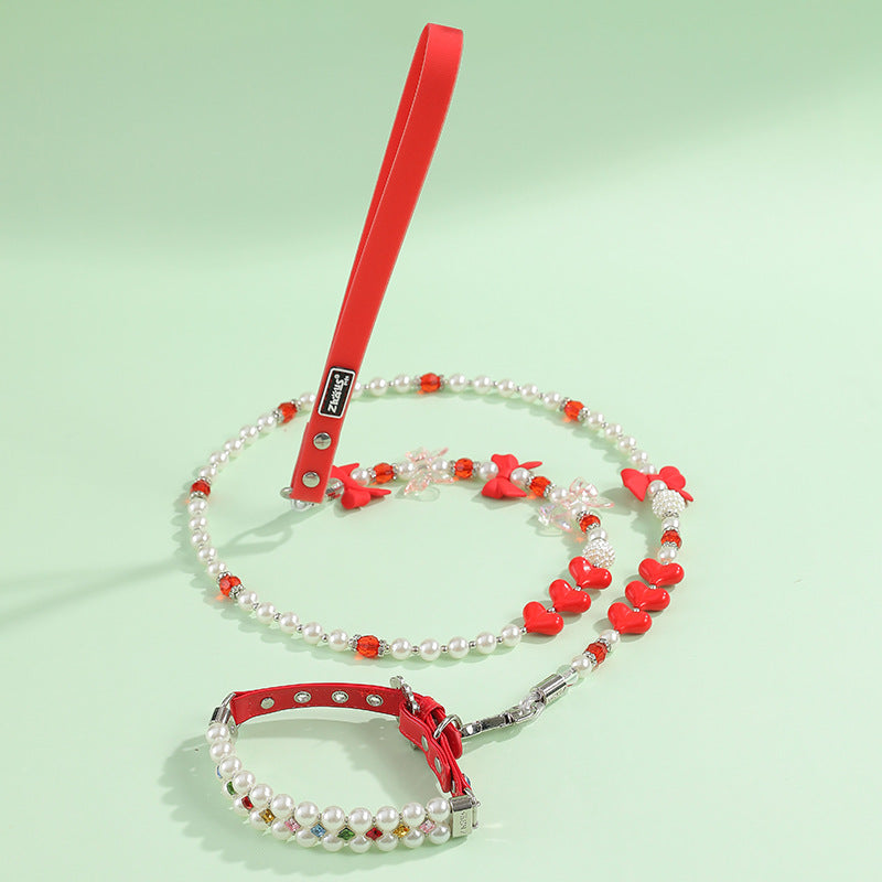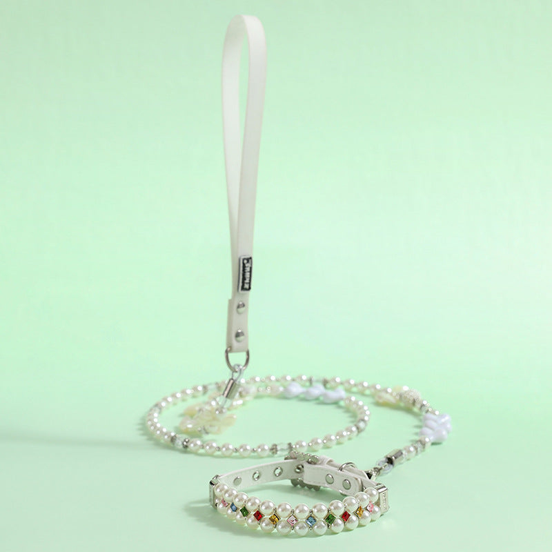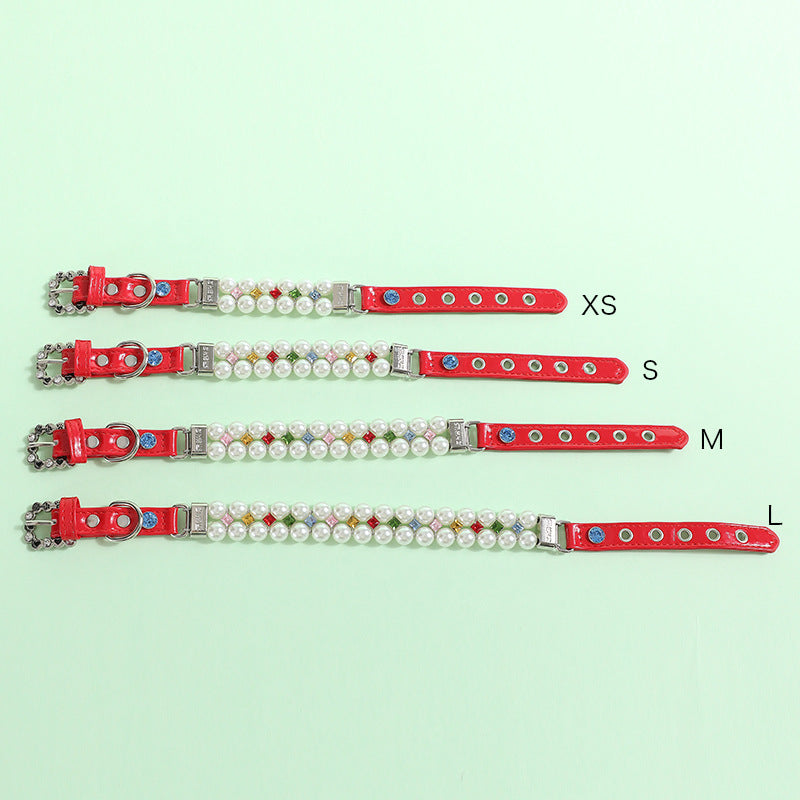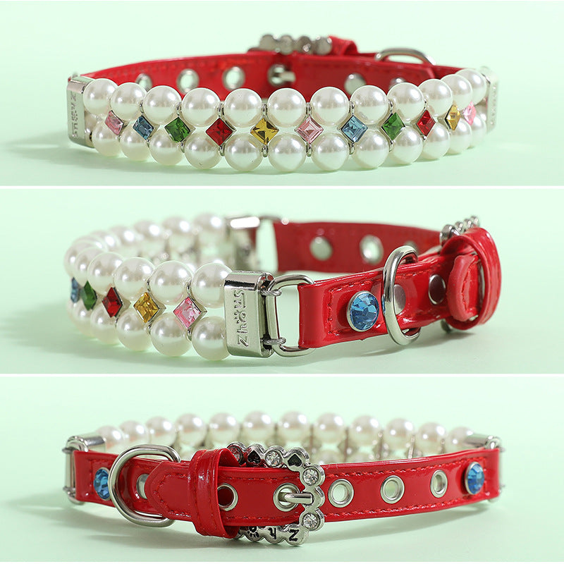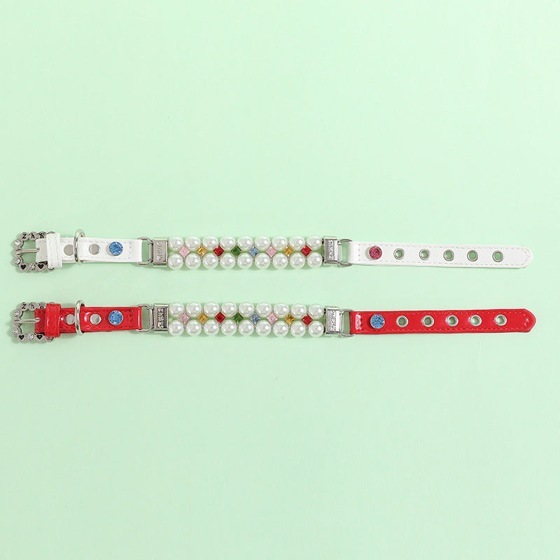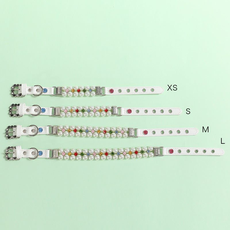 Multi-color Rhinestone Pearl Dog Cat Collar