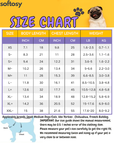 P.S.: There are differences in the same size of different products. Most products are for small breeds of dogs/cats, like Yorkies, Pug, Chihuahuas, Maltese, and etc other pets that weigh from 1lbs to 22lbs. The sizes may run smaller than usual.