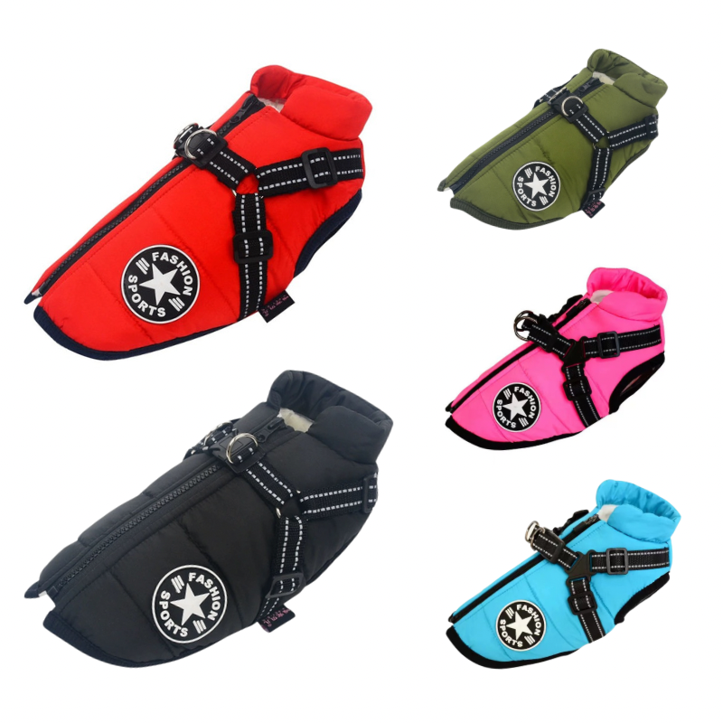 Warm Zipped Dog Jacket Vest Harness