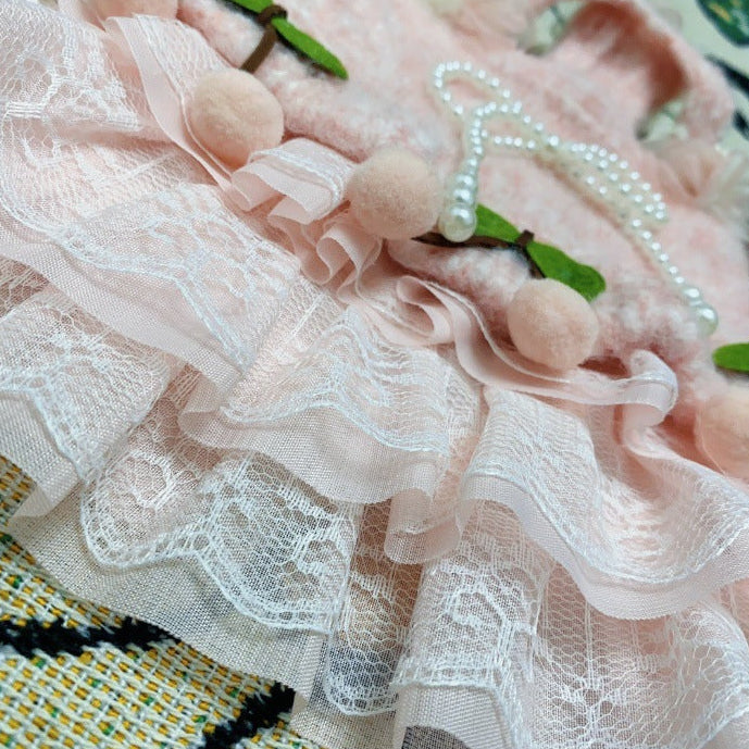 Sweet Cherry Flower Knitted Dog Cat Dress