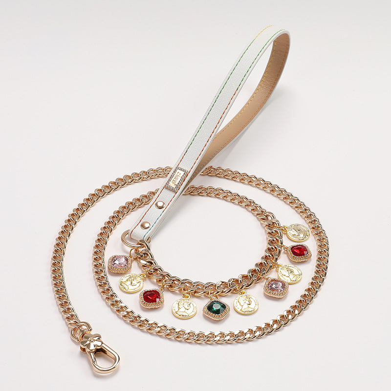 Multicolor Rhinestone Dog Cat Collar&Leash