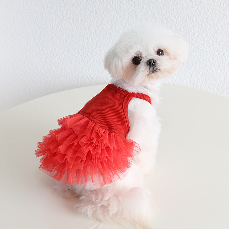 Solid Color Layered Dog Cat Lace Tutu Dress