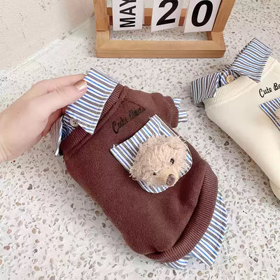 Casual Bear Decor Striped Shirt Dog Hoodie