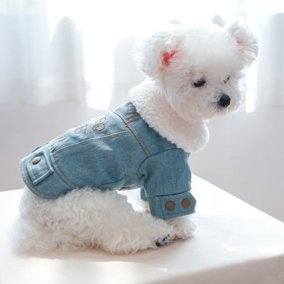 Letter Printed Fleece Denim Pet Coat