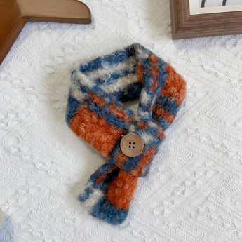 Plaid Pattern Buttoned Fleece Dog Cat Scarf