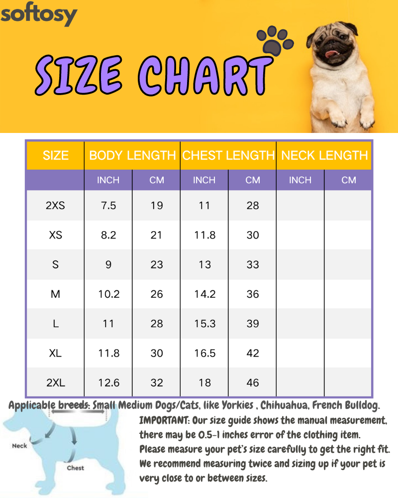P.S.: There are differences in the same size of different products. Most products are for small breeds of dogs/cats, like Yorkies, Pug, Chihuahuas, Maltese, and etc other pets that weigh from 1lbs to 22lbs. The sizes may run smaller than usual.