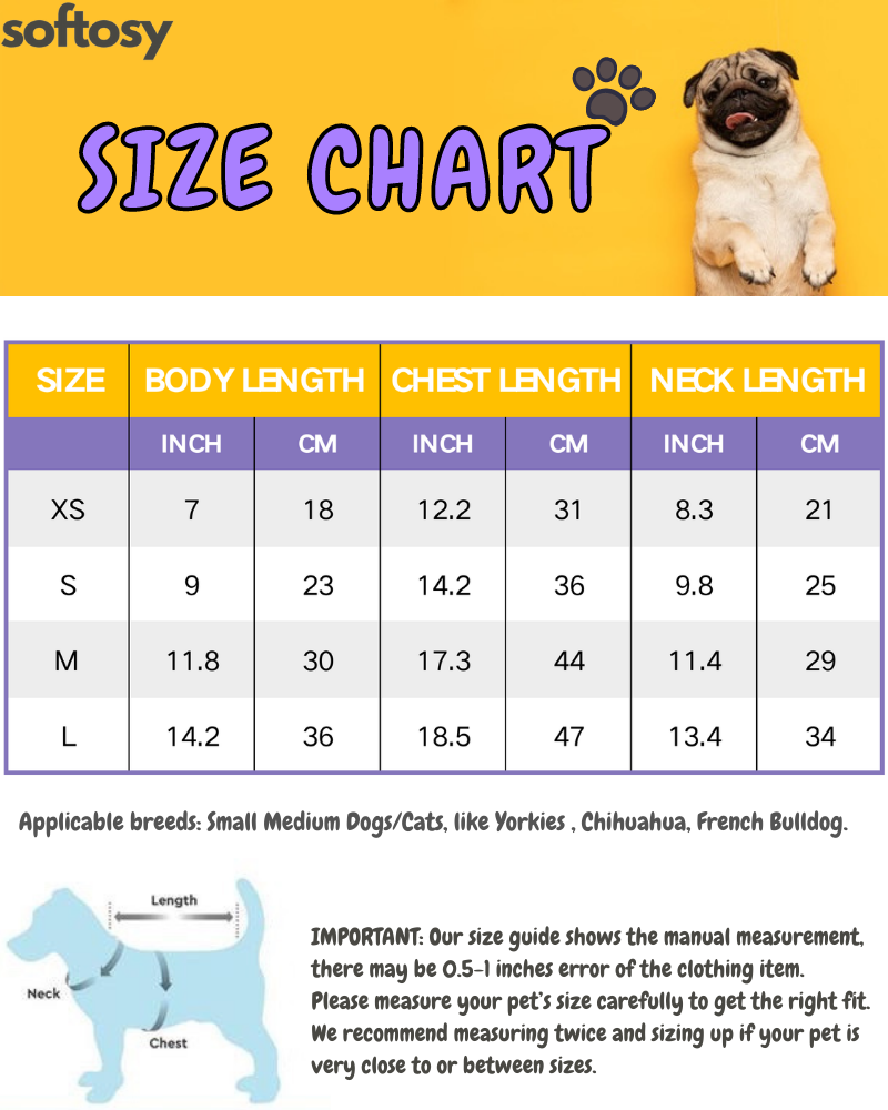 P.S.: There are differences in the same size of different products. Most products are for small breeds of dogs/cats, like Yorkies, Pug, Chihuahuas, Maltese, and etc other pets that weigh from 1lbs to 22lbs. The sizes may run smaller than usual.