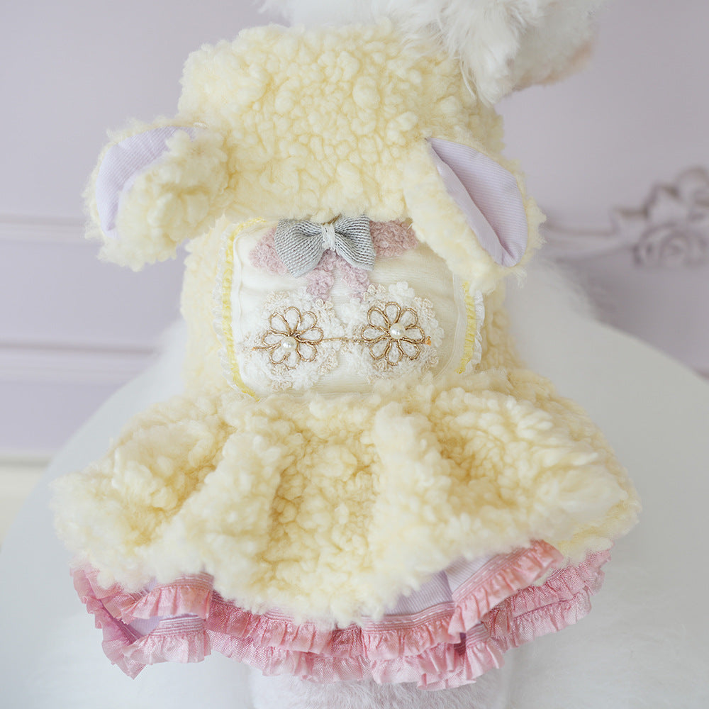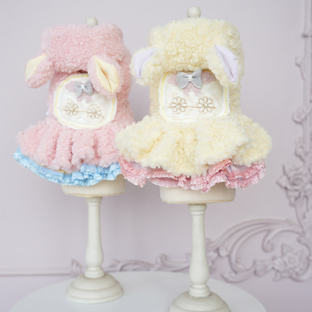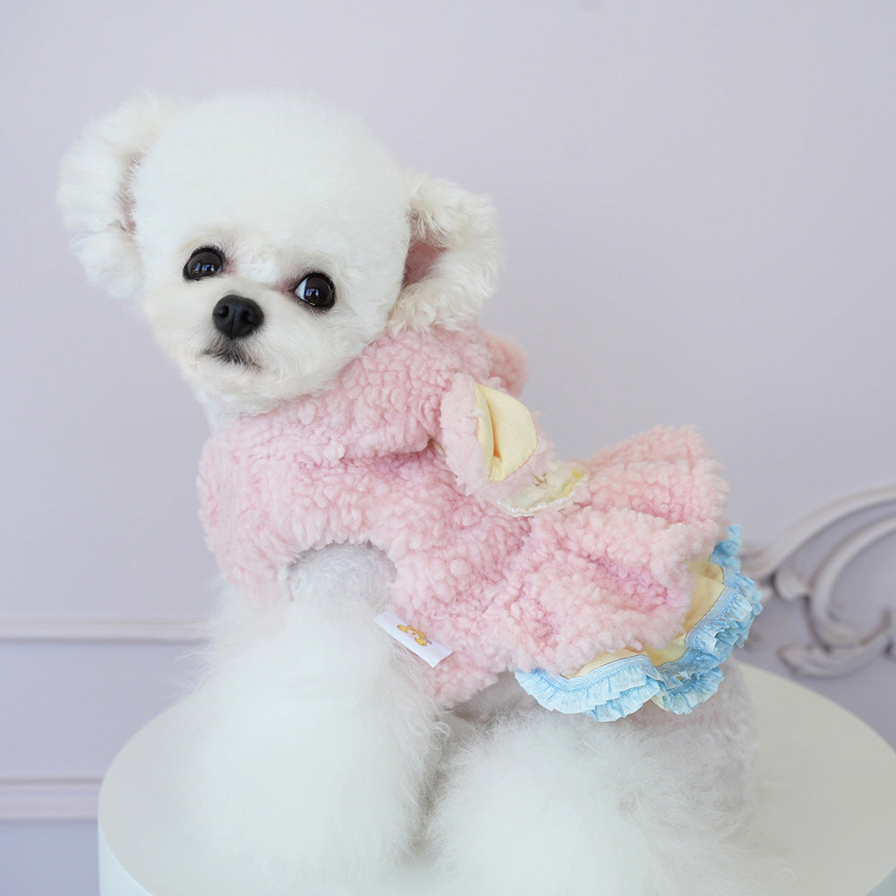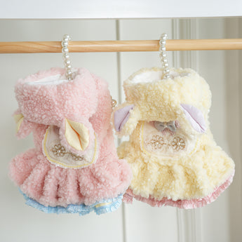 Fleece Layered Dog Cat Hooded Jacket Dress