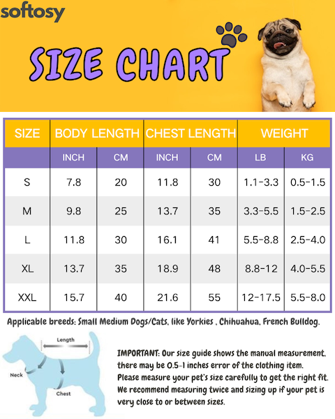 P.S.: There are differences in the same size of different products. Most products are for small breeds of dogs/cats, like Yorkies, Pug, Chihuahuas, Maltese, and etc other pets that weigh from 1lbs to 22lbs. The sizes may run smaller than usual.