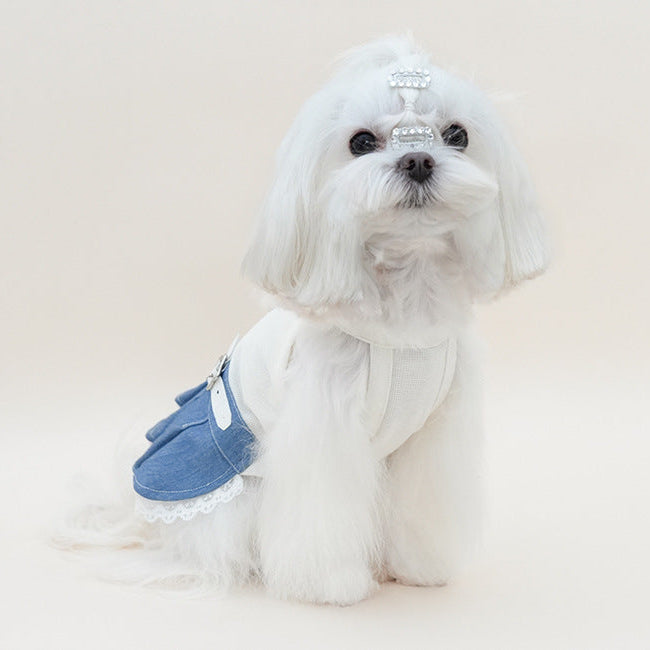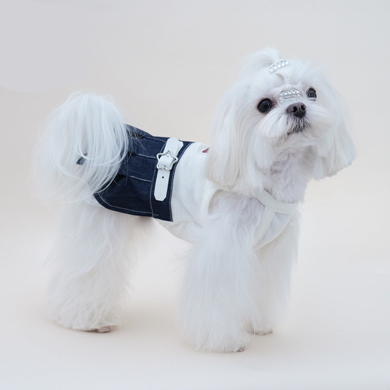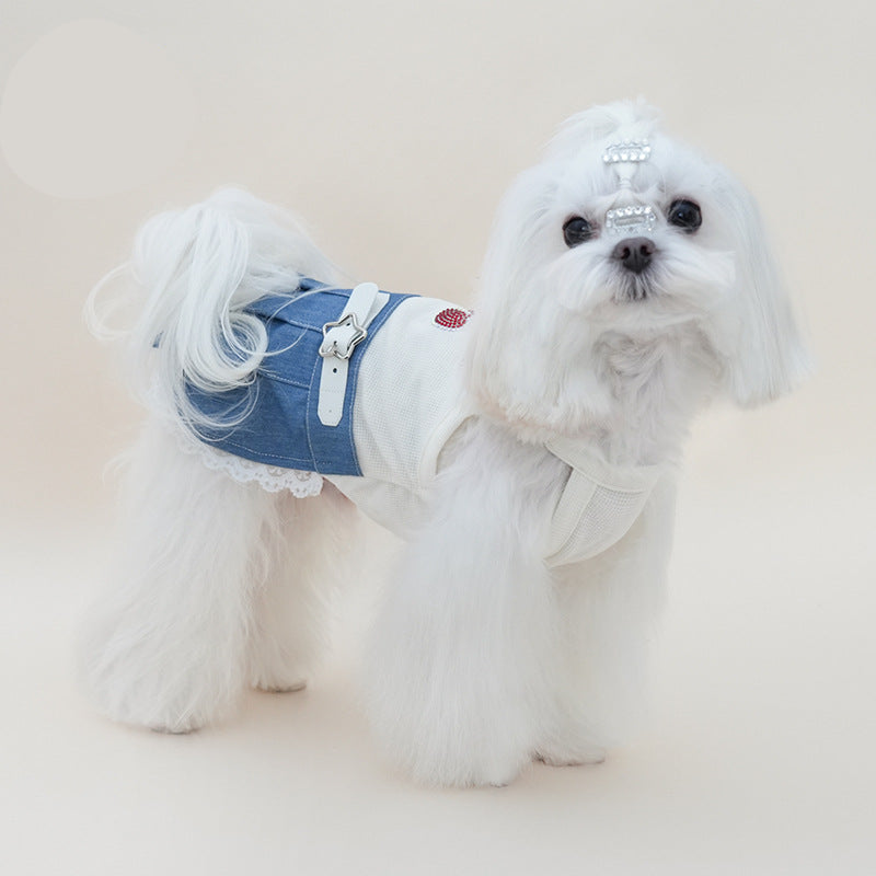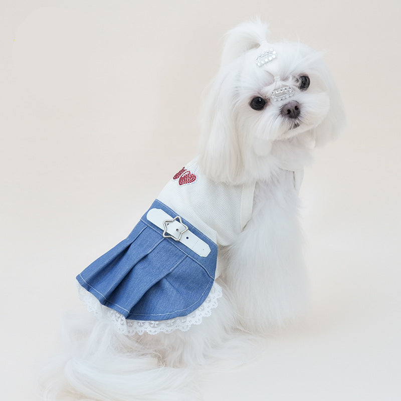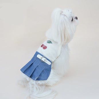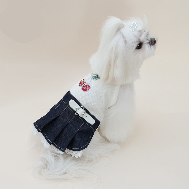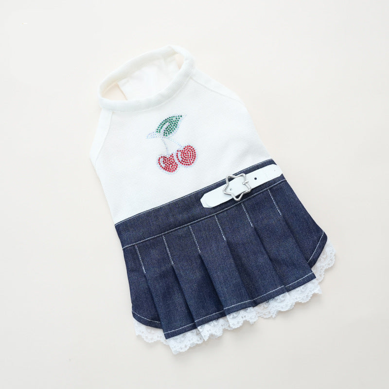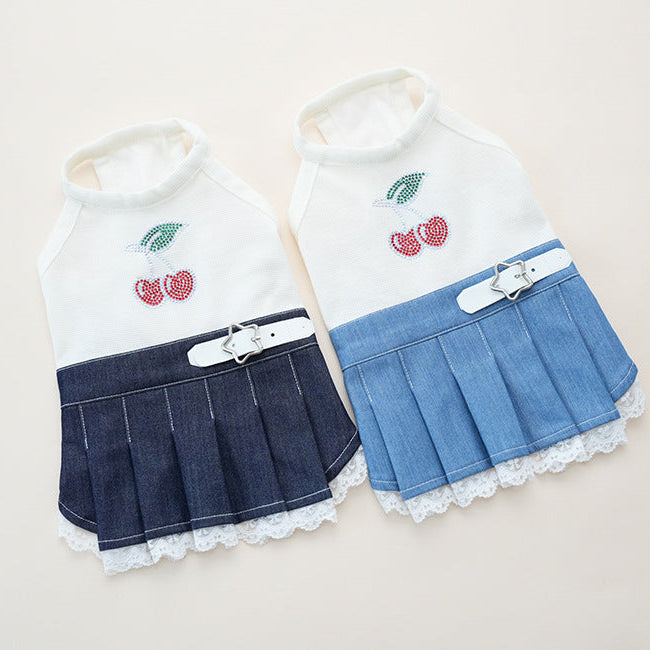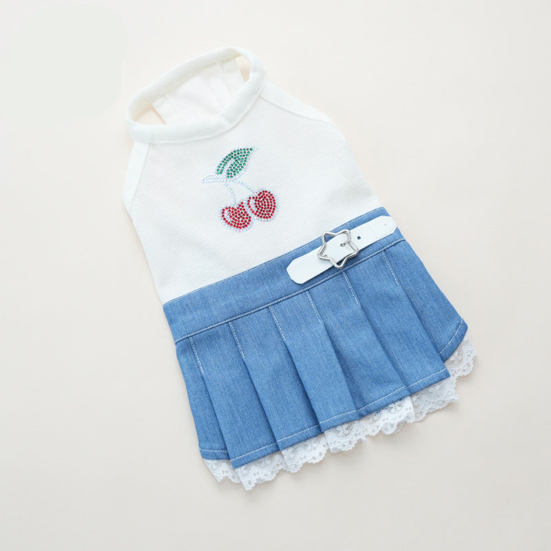 Rhinestone Cherry Belt Denim Dog Cat Dress