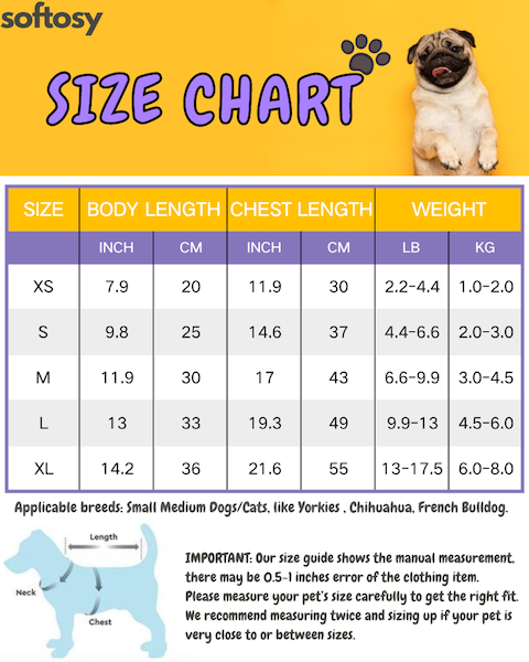 P.S.: There are differences in the same size of different products. Most products are for small breeds of dogs/cats, like Yorkies, Pug, Chihuahuas, Maltese, and etc other pets that weigh from 1lbs to 22lbs. The sizes may run smaller than usual.