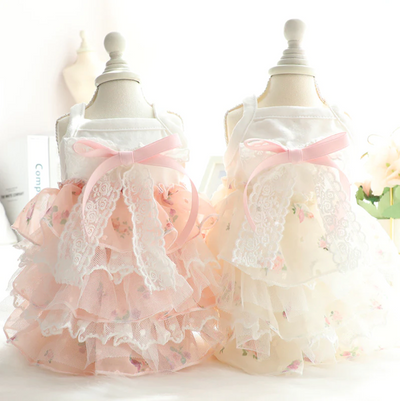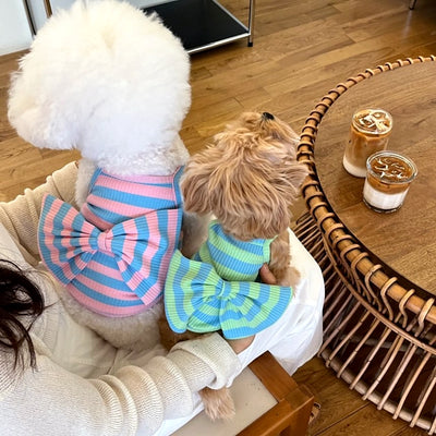 Furry Bowknot Dog Cat Sweater Layered Dress