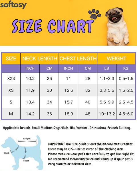 P.S.: There are differences in the same size of different products. Most products are for small breeds of dogs/cats, like Yorkies, Pug, Chihuahuas, Maltese, and etc other pets that weigh from 1lbs to 22lbs. The sizes may run smaller than usual.