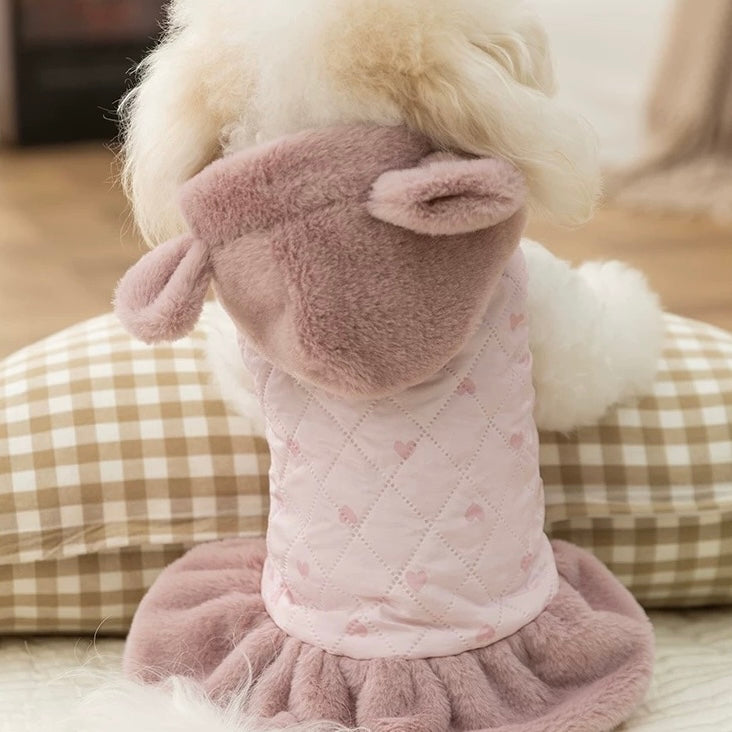 Warm Heart Printed Dog Cat Hooded Jacket Dress