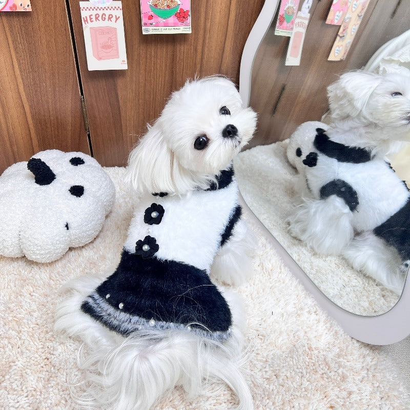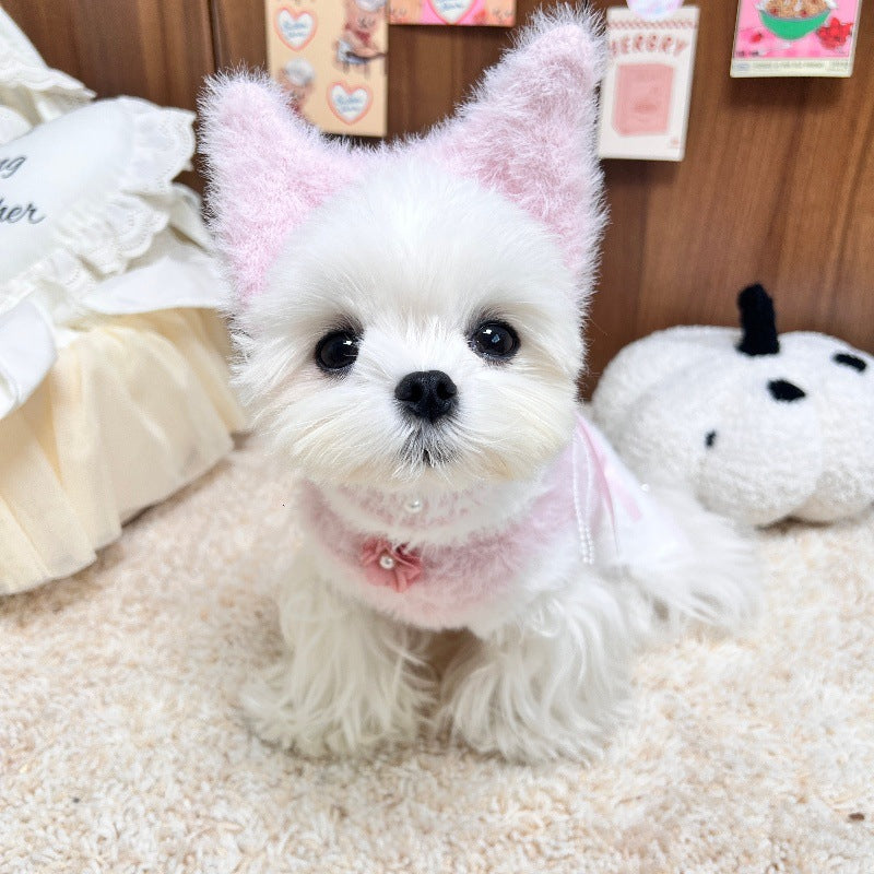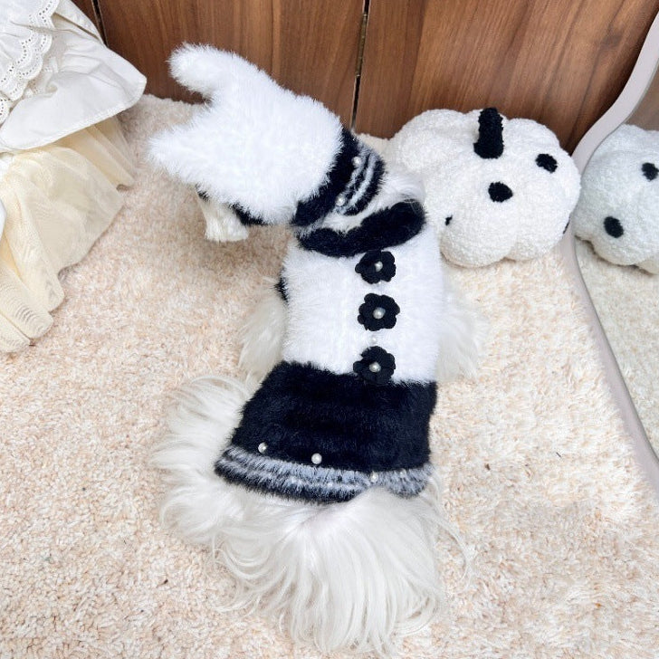 Pearl Flower Decor Dog Cat Sweater Dress Hat