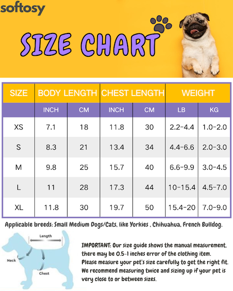 P.S.: There are differences in the same size of different products. Most products are for small breeds of dogs/cats, like Yorkies, Pug, Chihuahuas, Maltese, and etc other pets that weigh from 1lbs to 22lbs. The sizes may run smaller than usual.