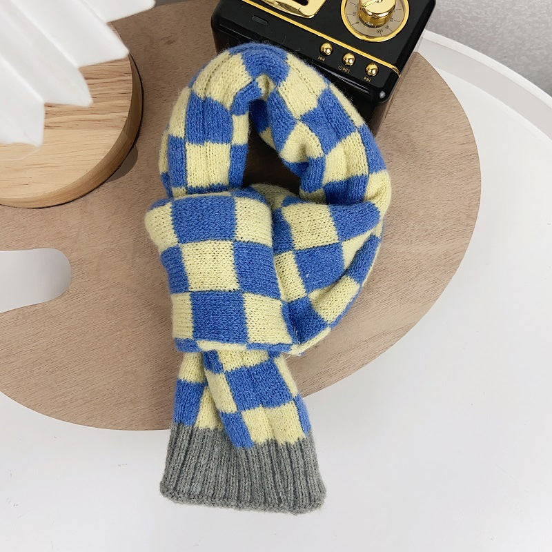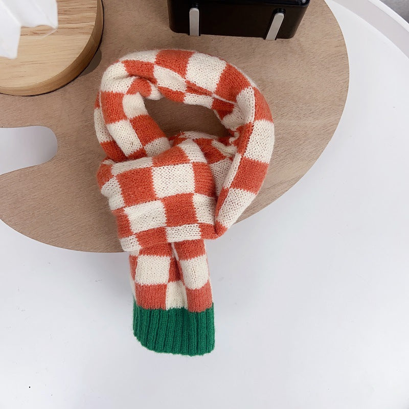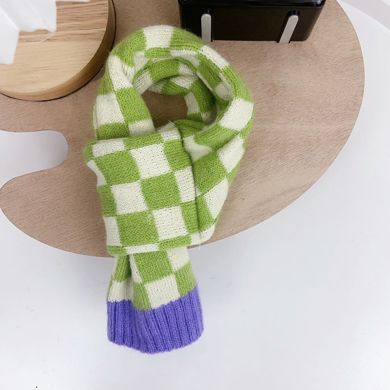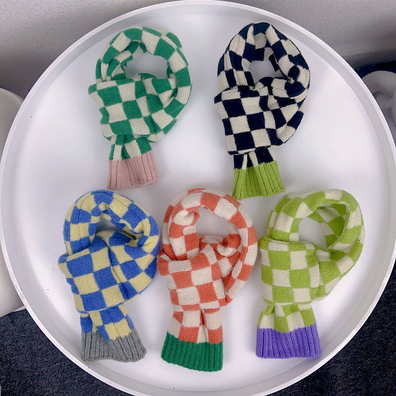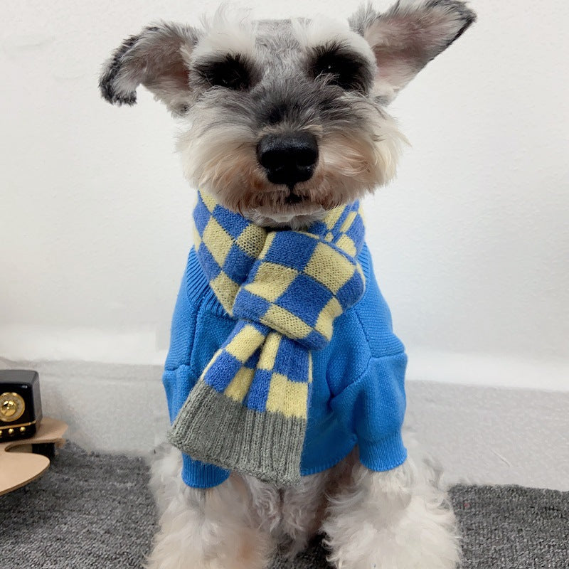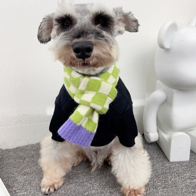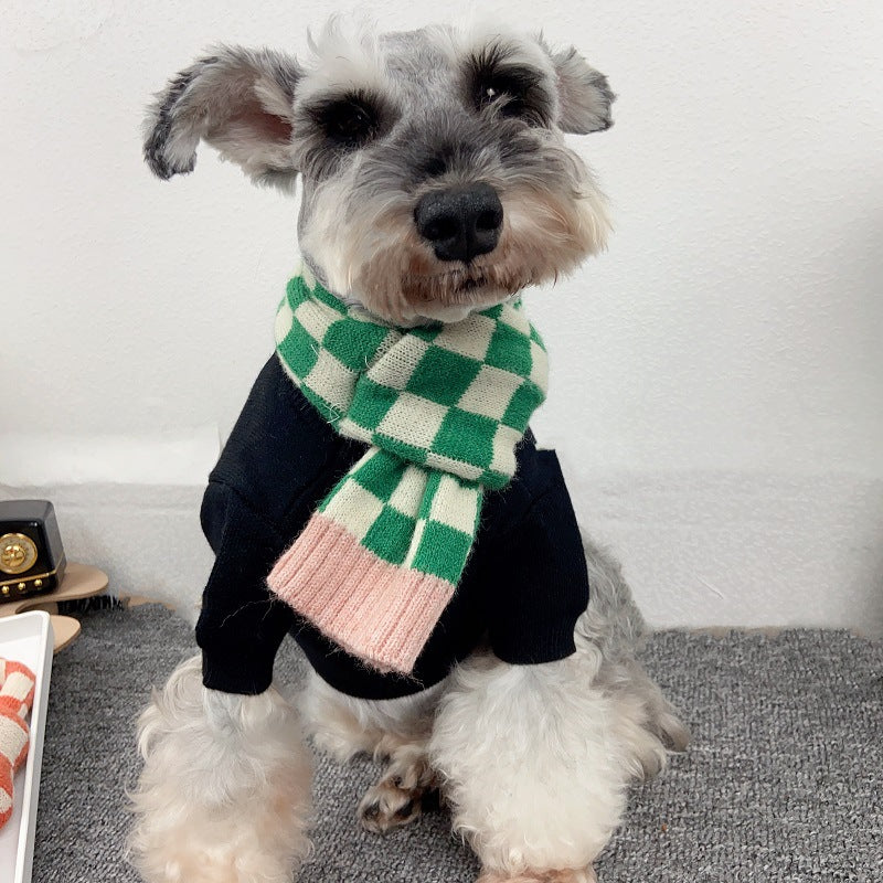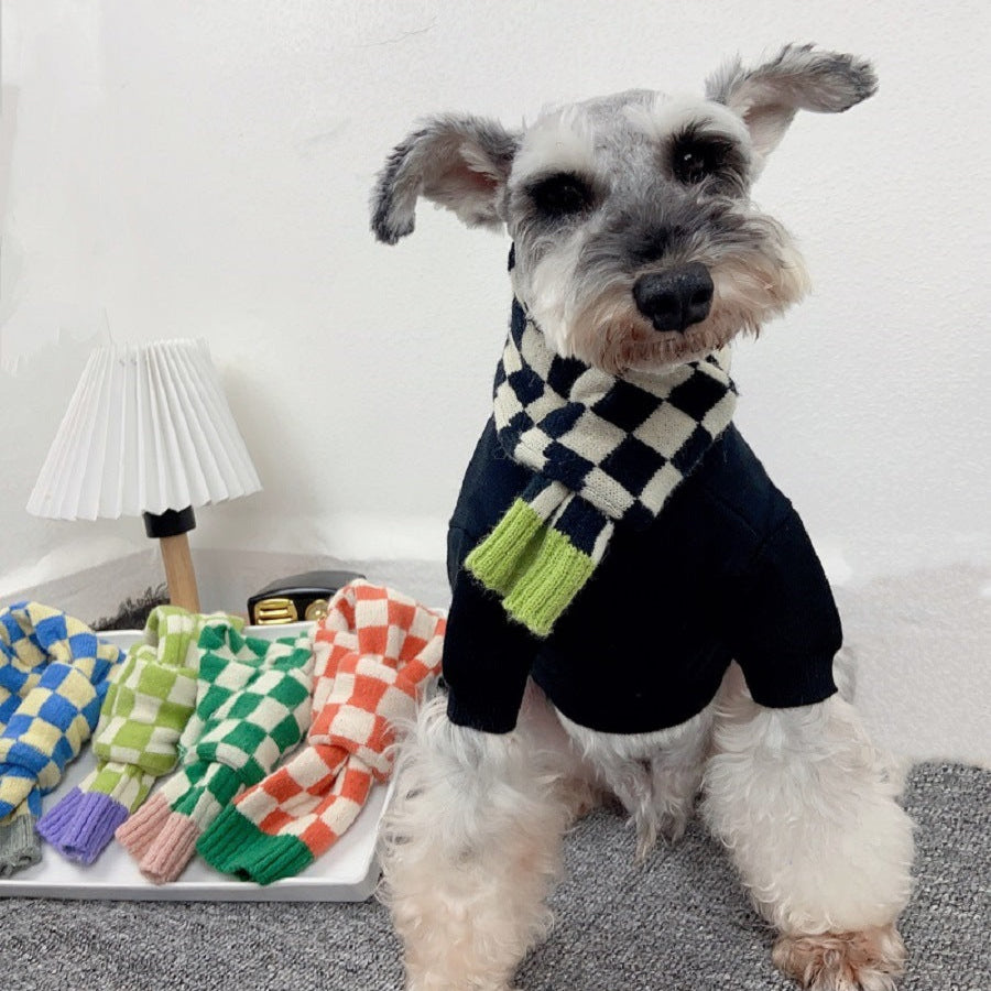 Chequer Contrast Color Knitted Dog Cat Scarf