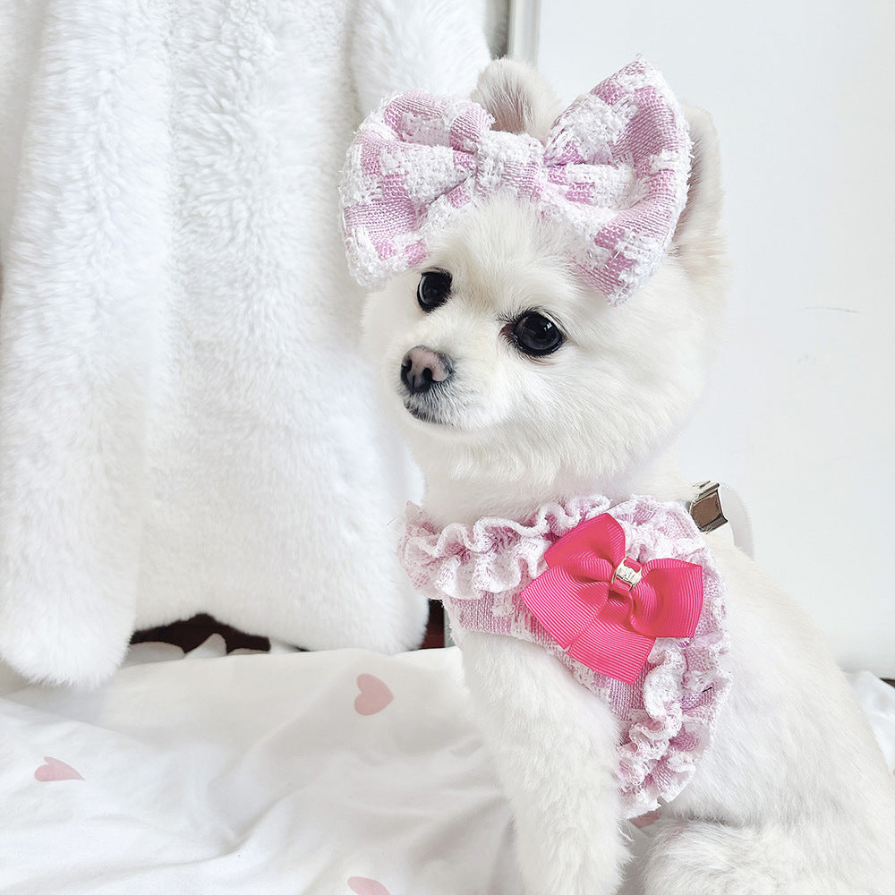 Plaid Layered Bow Dog Harness&Leash