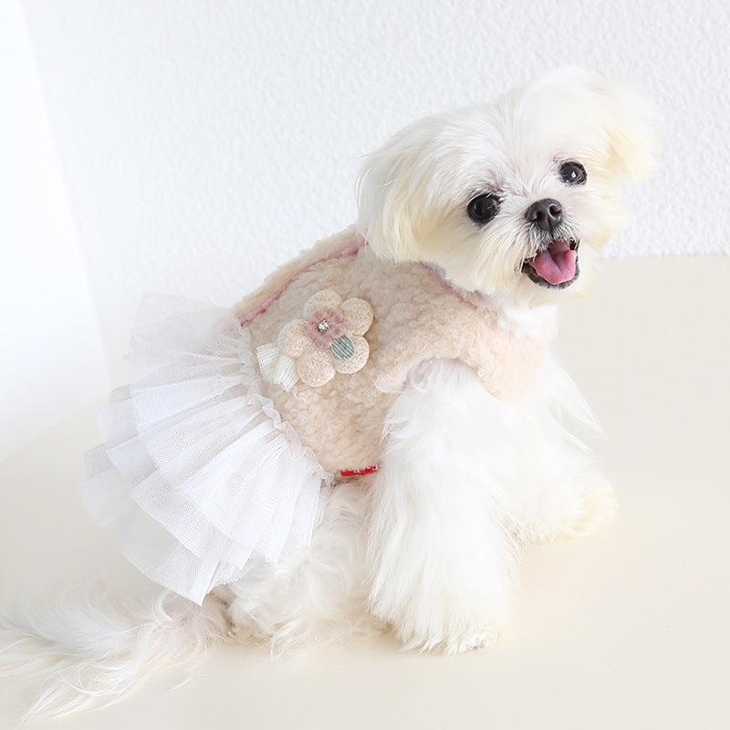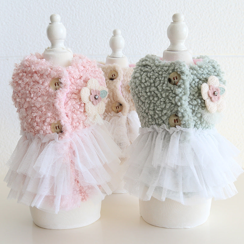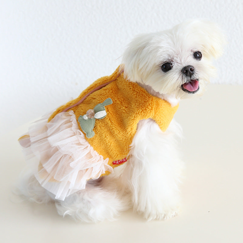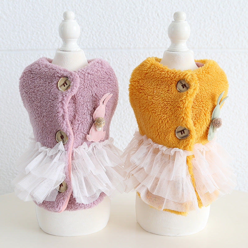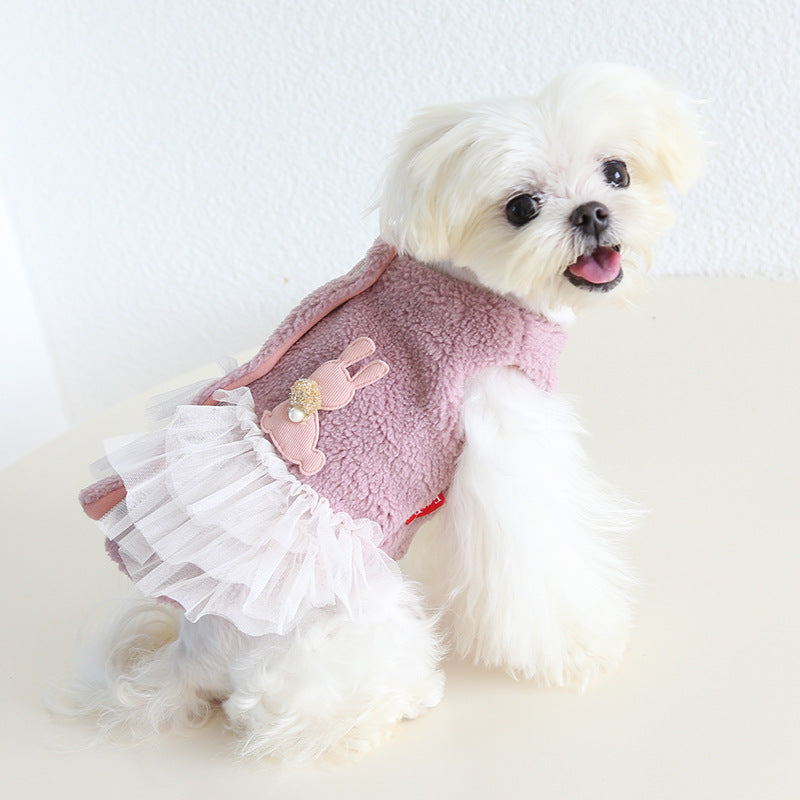 Fleece Flower Tree Rabbit Decor Dog Cat Lace Dress