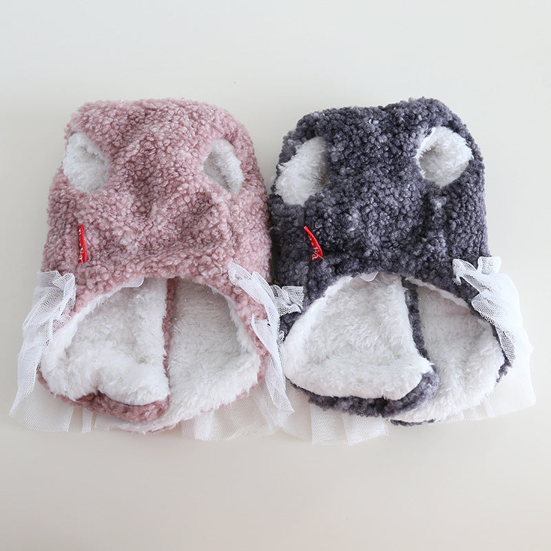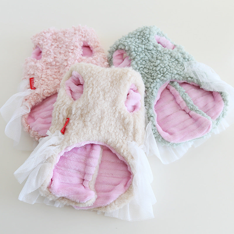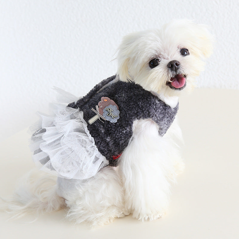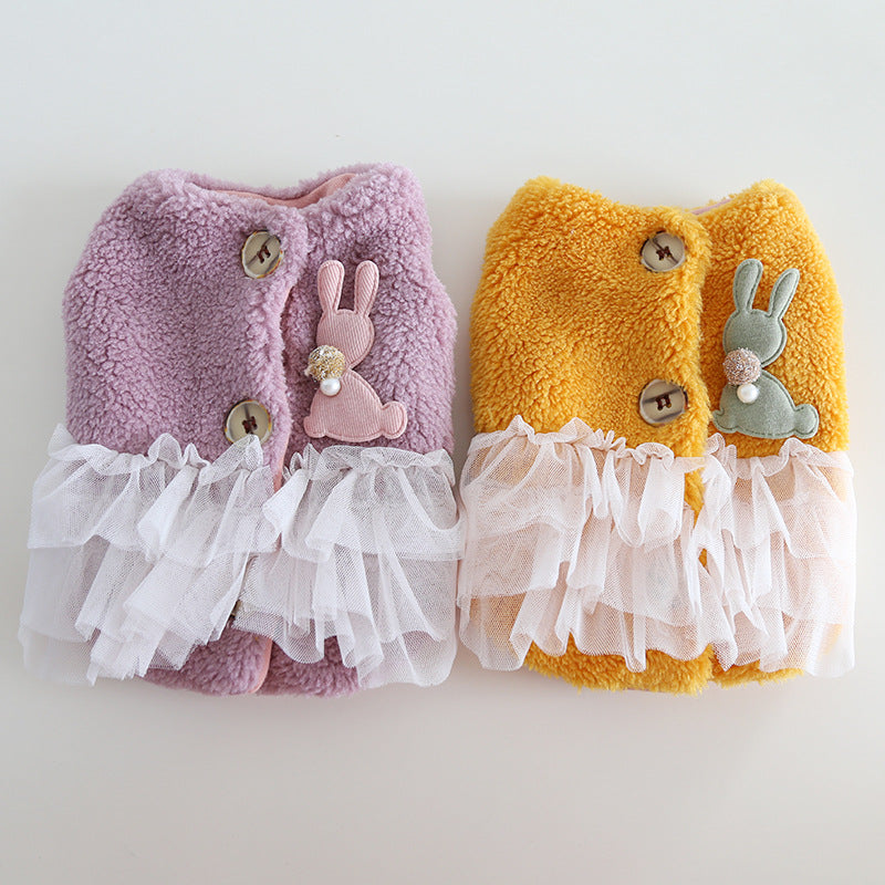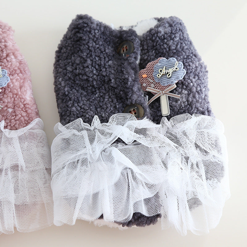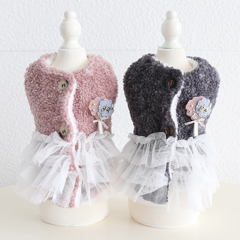 Fleece Flower Tree Rabbit Decor Dog Cat Lace Dress