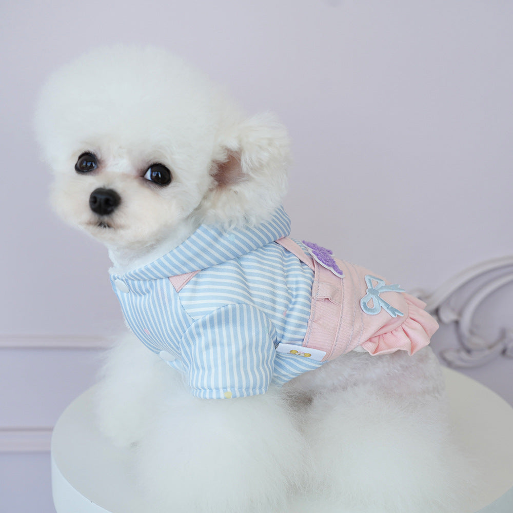 Warm Cross Straps Striped Hooded Dog Cat Jacket