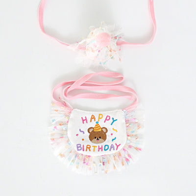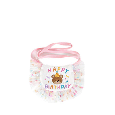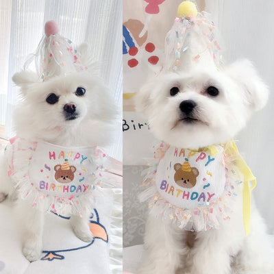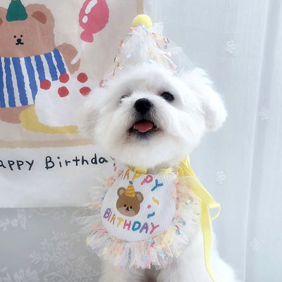 Birthday Bear Printed Dog Cat Bib&Hat Set