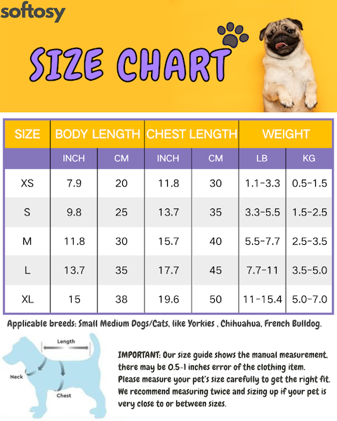 P.S.: There are differences in the same size of different products. Most products are for small breeds of dogs/cats, like Yorkies, Pug, Chihuahuas, Maltese, and etc other pets that weigh from 1lbs to 22lbs. The sizes may run smaller than usual.