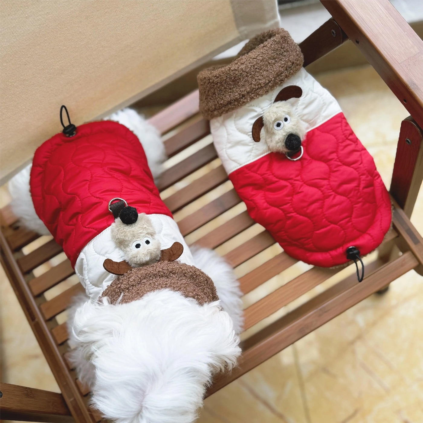 Color Block Dog Decor Fleece Dog Harness Jacket