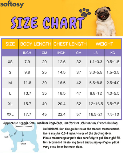 P.S.: There are differences in the same size of different products. Most products are for small breeds of dogs/cats, like Yorkies, Pug, Chihuahuas, Maltese, and etc other pets that weigh from 1lbs to 22lbs. The sizes may run smaller than usual.