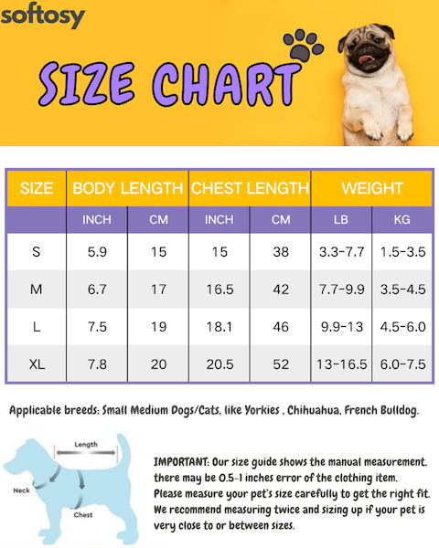 P.S.: There are differences in the same size of different products. Most products are for small breeds of dogs/cats, like Yorkies, Pug, Chihuahuas, Maltese, and etc other pets that weigh from 1lbs to 22lbs. The sizes may run smaller than usual.