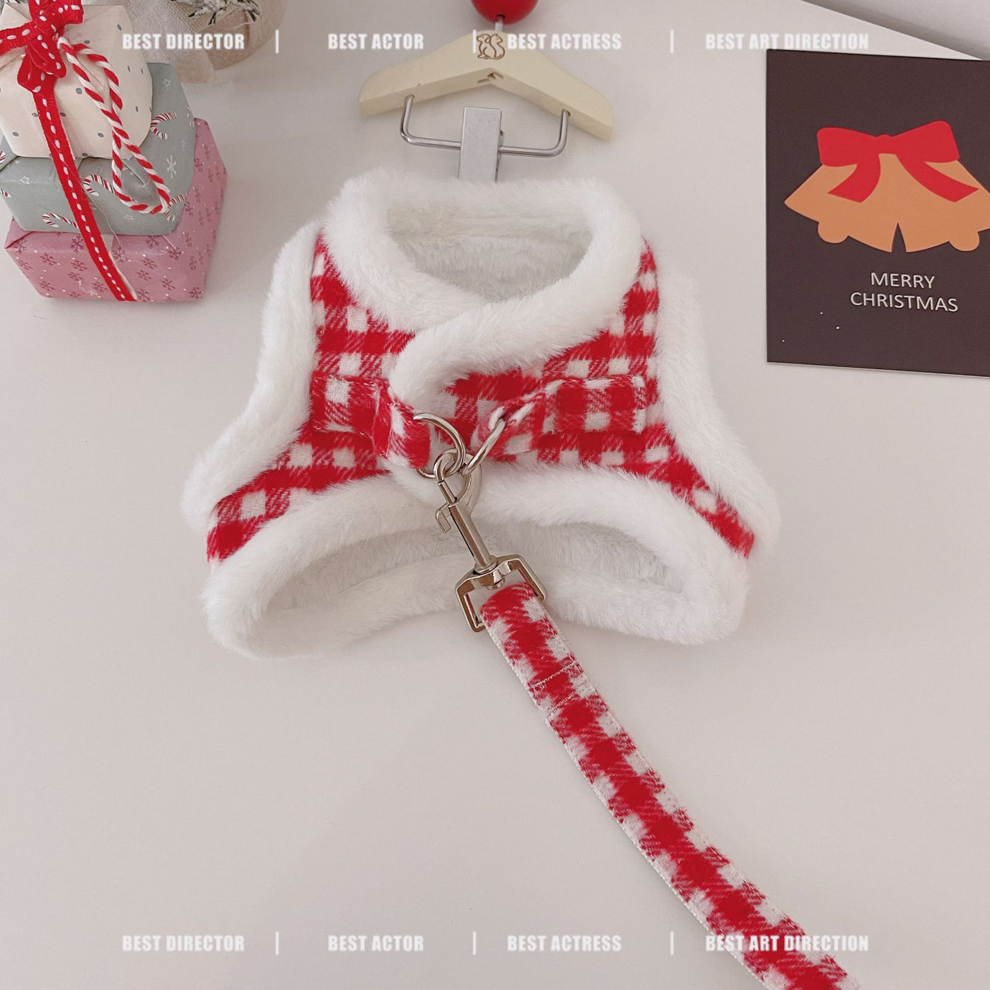 Fleece Furry Plaid Pattern Dog Harness&Leash