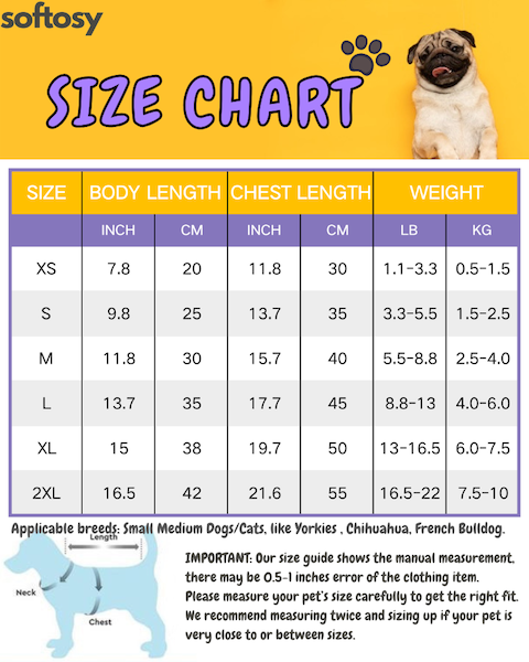 P.S.: There are differences in the same size of different products. Most products are for small breeds of dogs/cats, like Yorkies, Pug, Chihuahuas, Maltese, and etc other pets that weigh from 1lbs to 22lbs. The sizes may run smaller than usual.