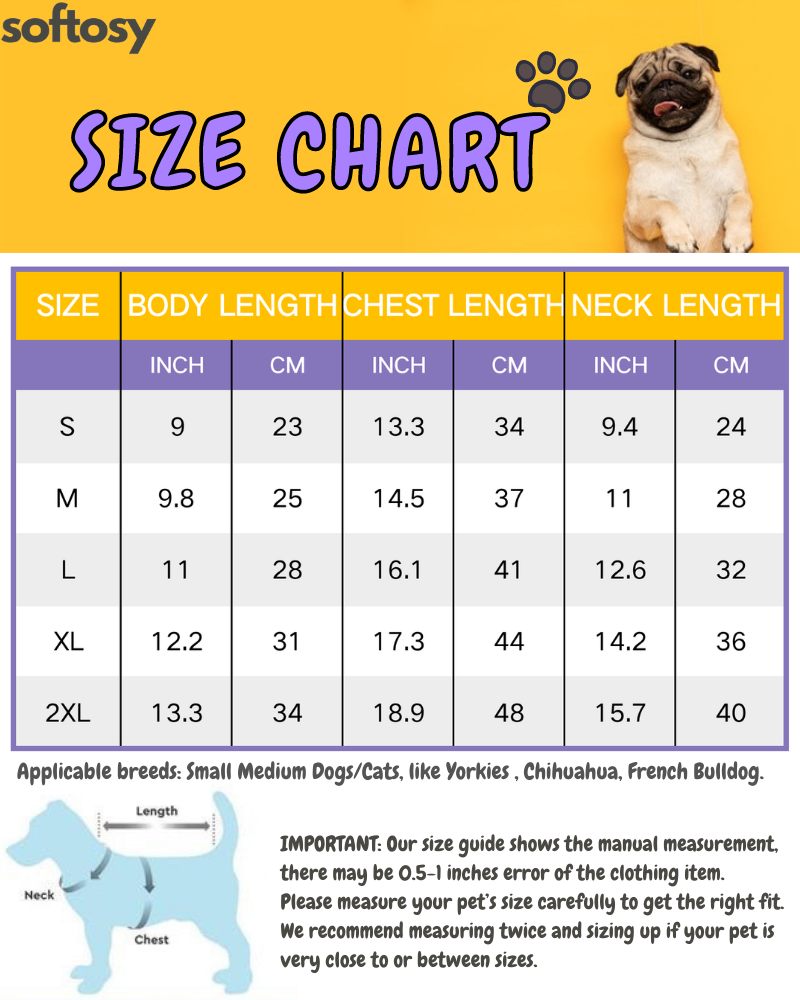 P.S.: There are differences in the same size of different products. Most products are for small breeds of dogs/cats, like Yorkies, Pug, Chihuahuas, Maltese, and etc other pets that weigh from 1lbs to 22lbs. The sizes may run smaller than usual.