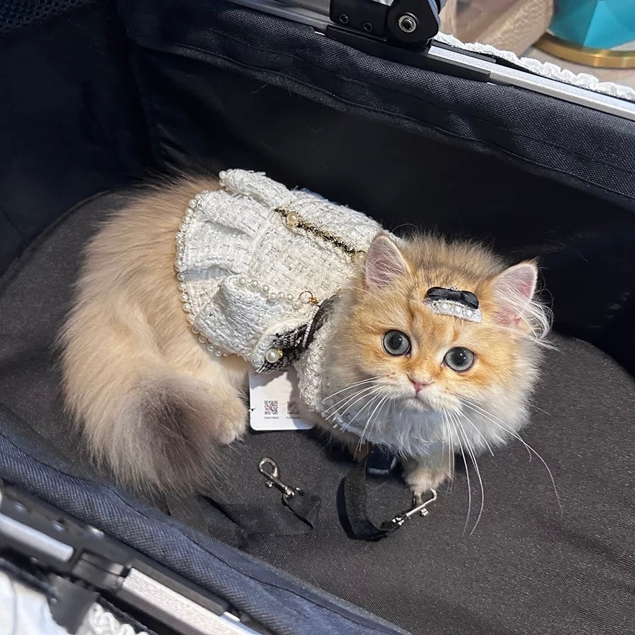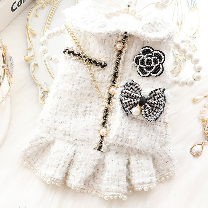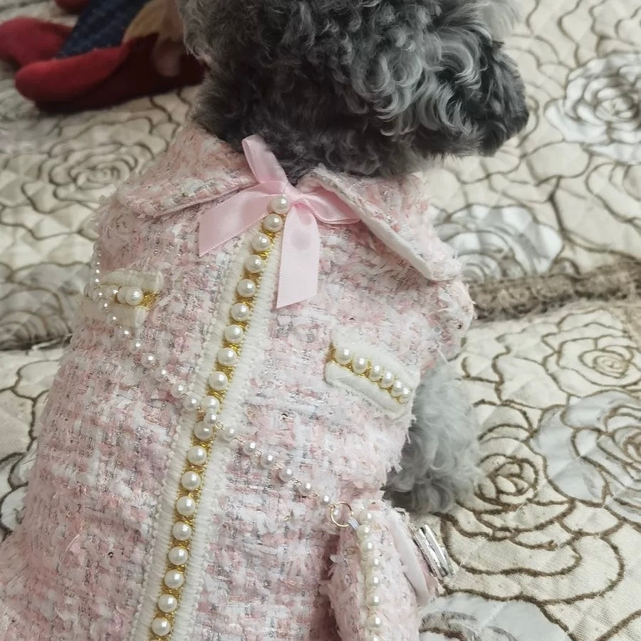 Pearl Flower Bowknot Decor Dog Cat Dress