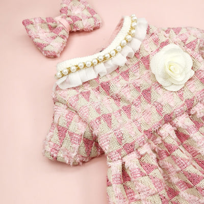 Plaid Pearl Bow Dog Cat Dress&Collar Set