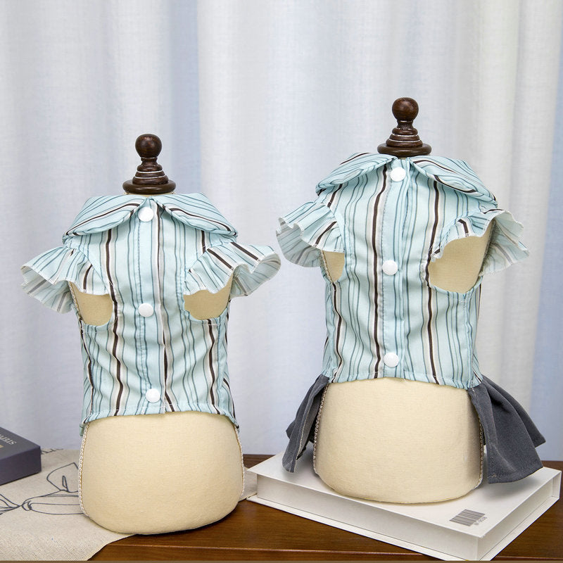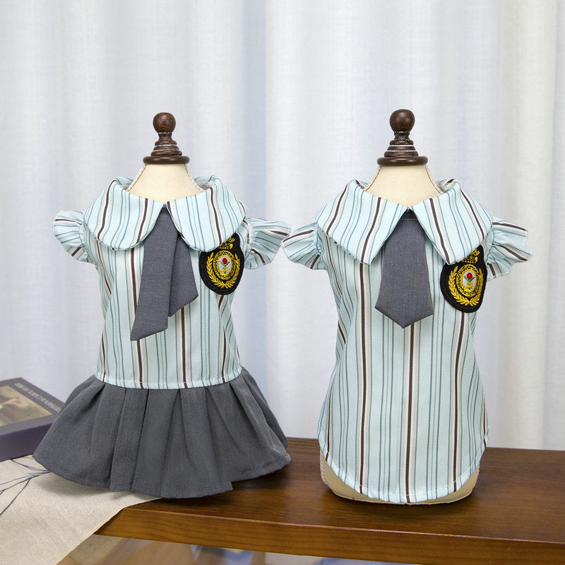 Preppy Style Striped Tie Dog Cat Dress/Shirt