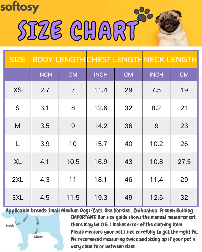 P.S.: There are differences in the same size of different products. Most products are for small breeds of dogs/cats, like Yorkies, Pug, Chihuahuas, Maltese, and etc other pets that weigh from 1lbs to 22lbs. The sizes may run smaller than usual.