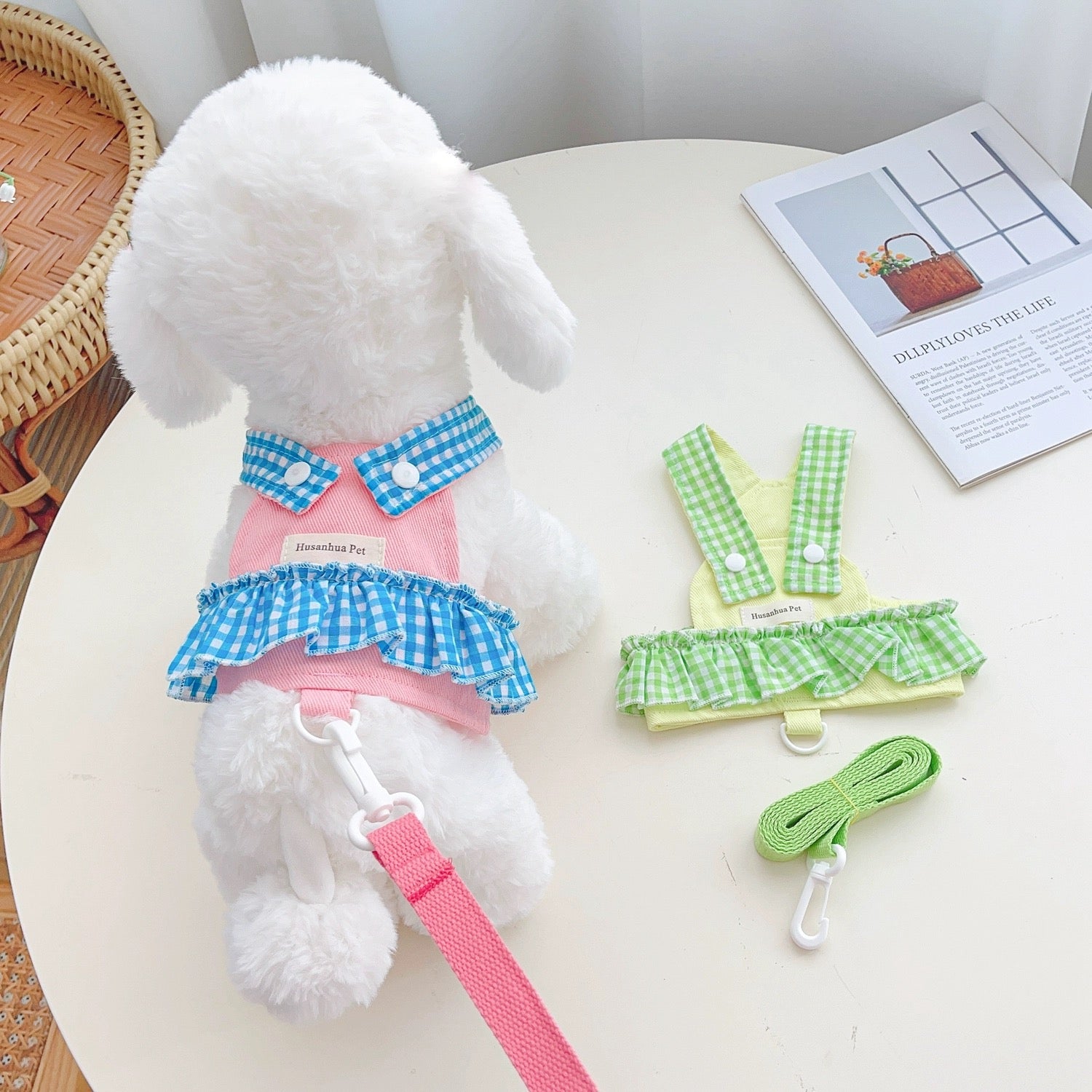 Sweet Contrast Color Plaid Dog Harness&Leash