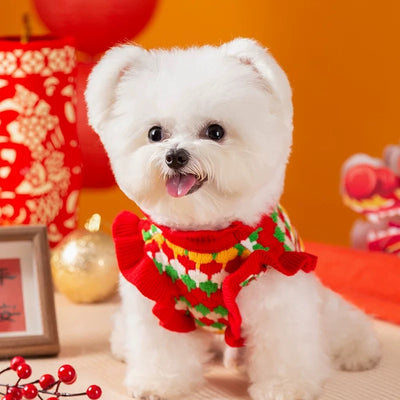 Sweet Knitted Flower Ruffled Sleeves Dog Cat Sweater