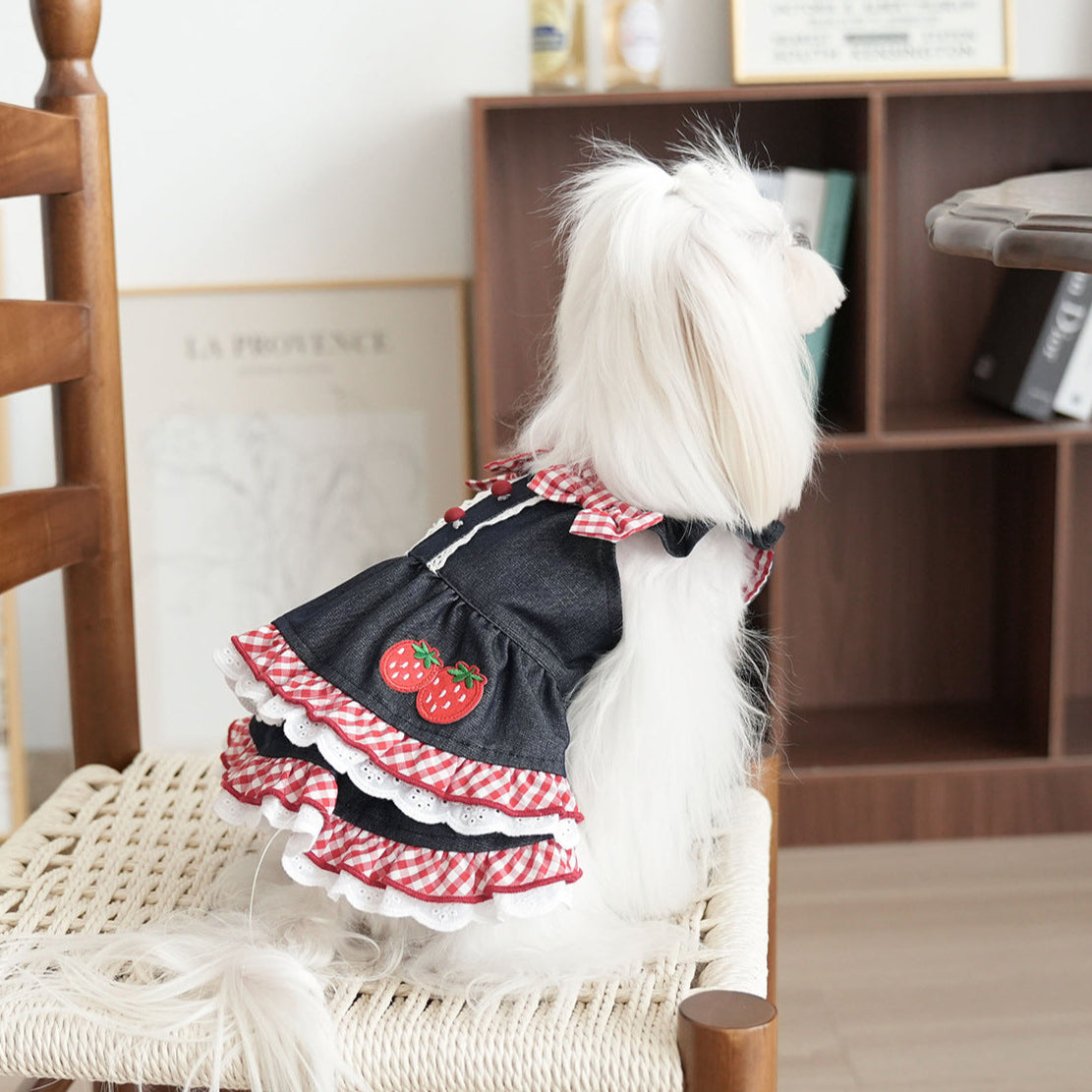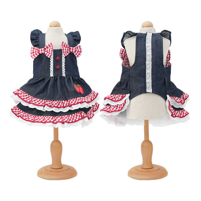 Sweet Strawberry Pattern Denim Dog Cat Dress